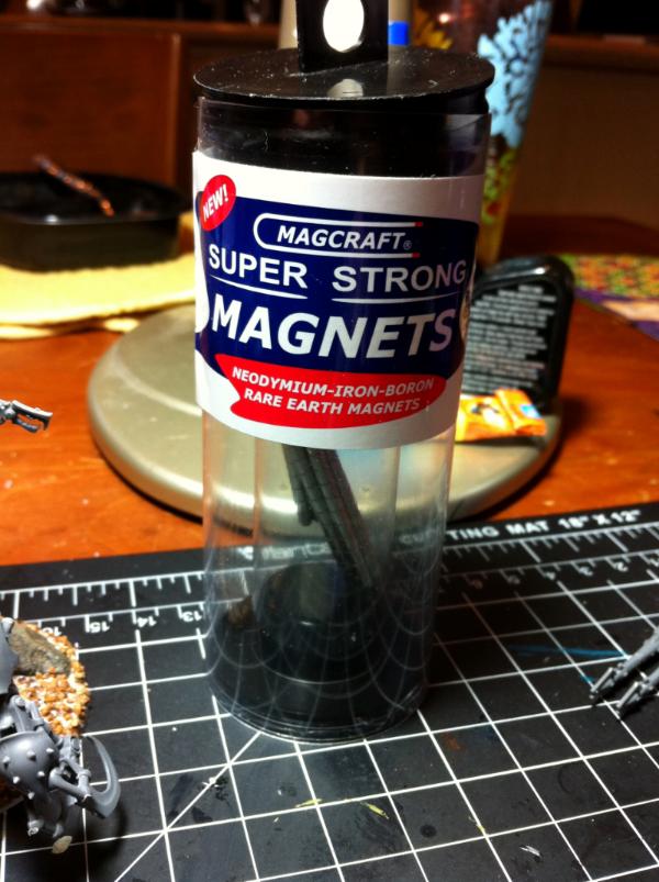 These are the brand of magnets I use. They come in hobby friendly sizes. A pack of 100 runs about $10. I picked up mine at my hobby shop. They are also available on-line.