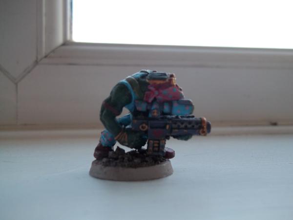 Recently my mum has got into painting models and I came home one day to find out that she had "borrowed" one of my orks. However I thought she had done a cracking job considering it was her second model she had ever painted and I thought that I'd share it with you guys.
