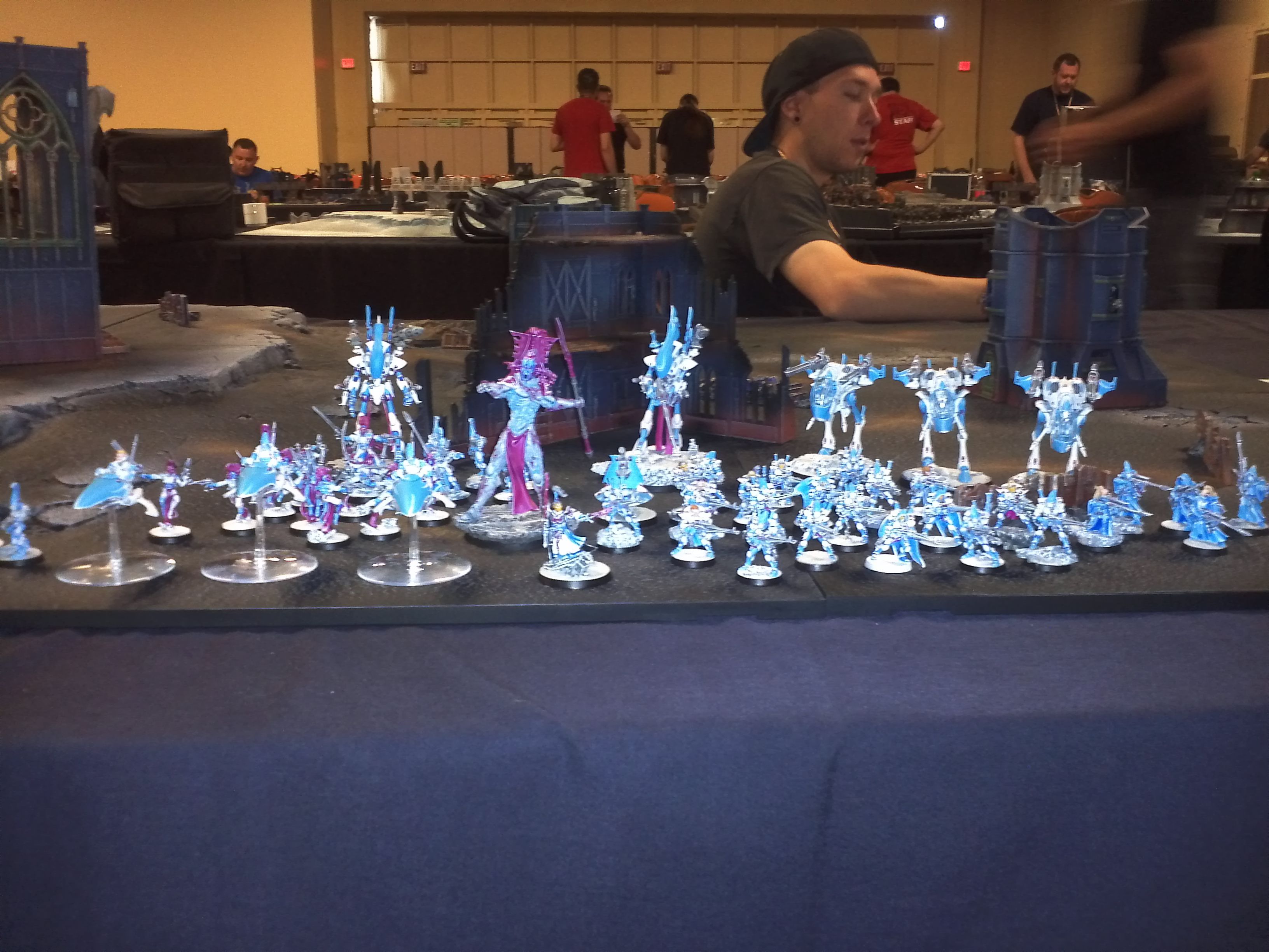 Awesome army, and sweet paint job. I have 50 dire avengers and have toyed with the idea of bringing them all but I normally use guardians and a squad of "troop" wraith guard but I think the 18" range may be better than the weapon platform the guardians bring. Nice to see you lay the smack down with footdar.