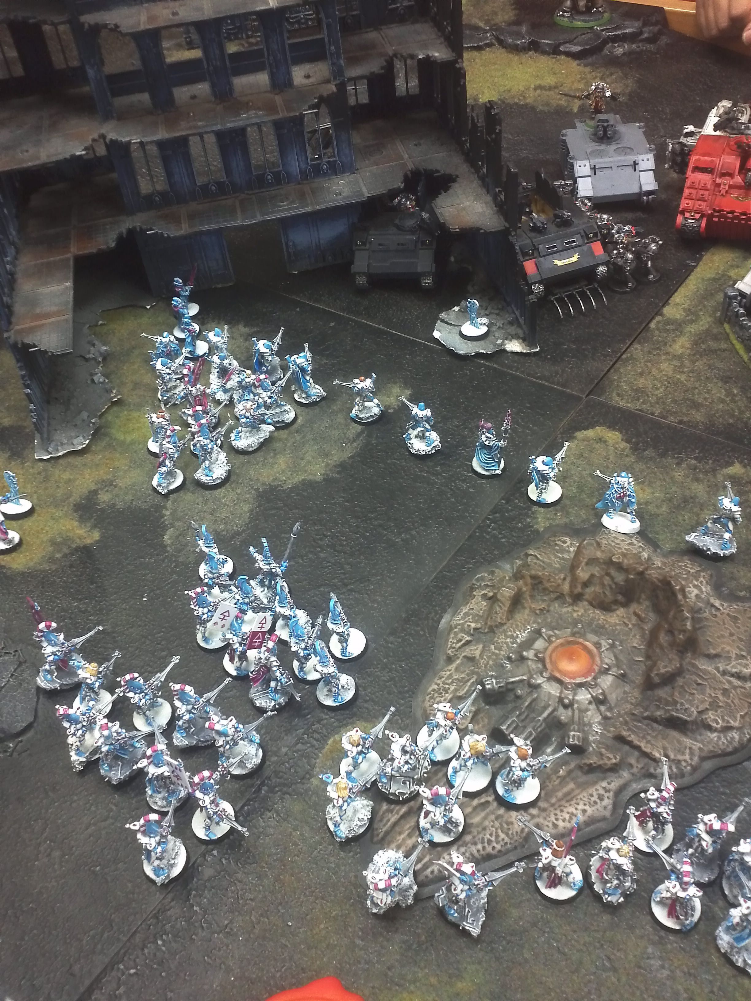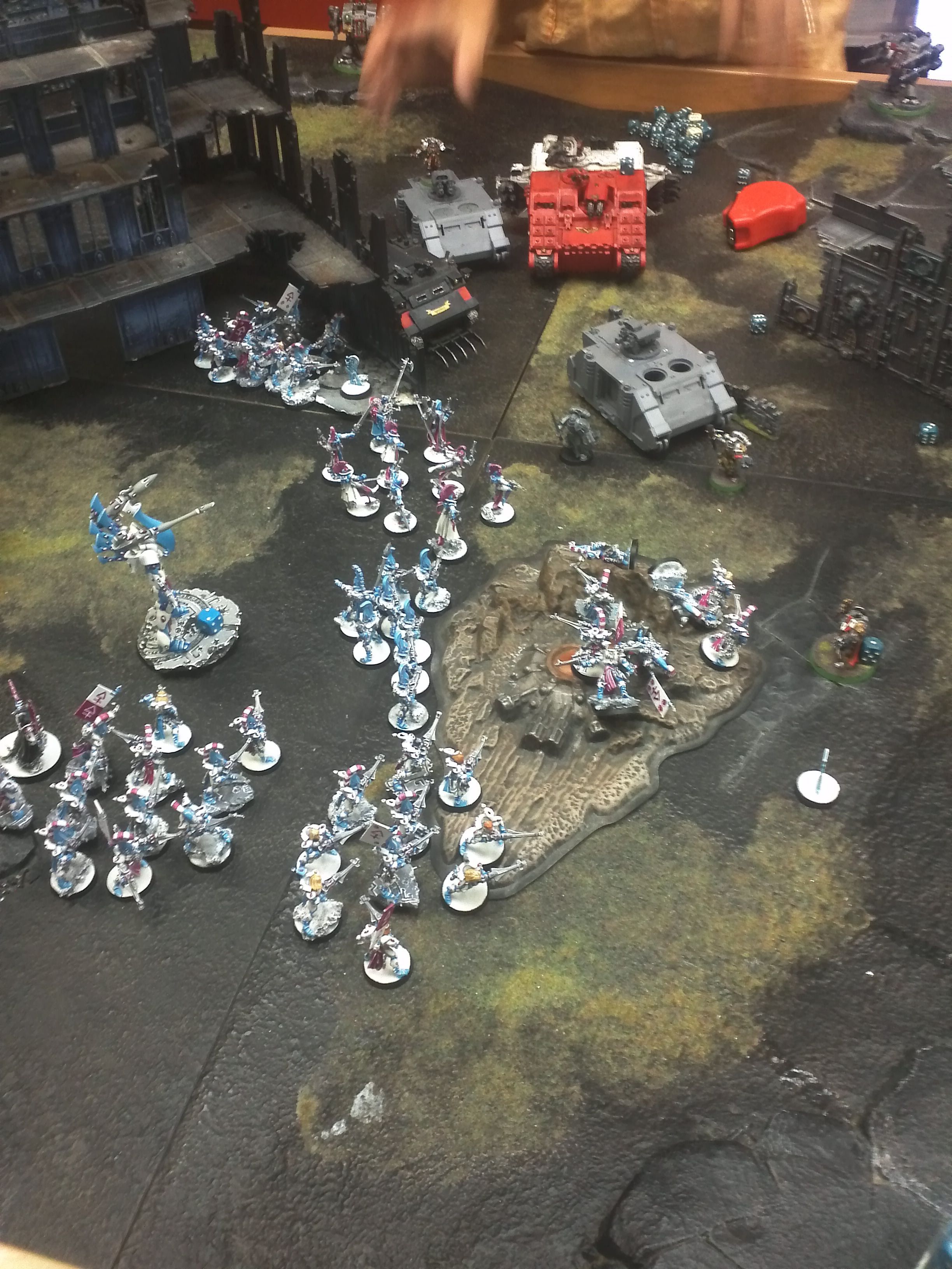 The list isn't a long range AT power house, clearly, but clever play and especially a situation like this where armies are coming at me, the Footdar will have sufficient weapons to open transports. Eldar can bring mass strength6, which is sufficient for AV11 targets.