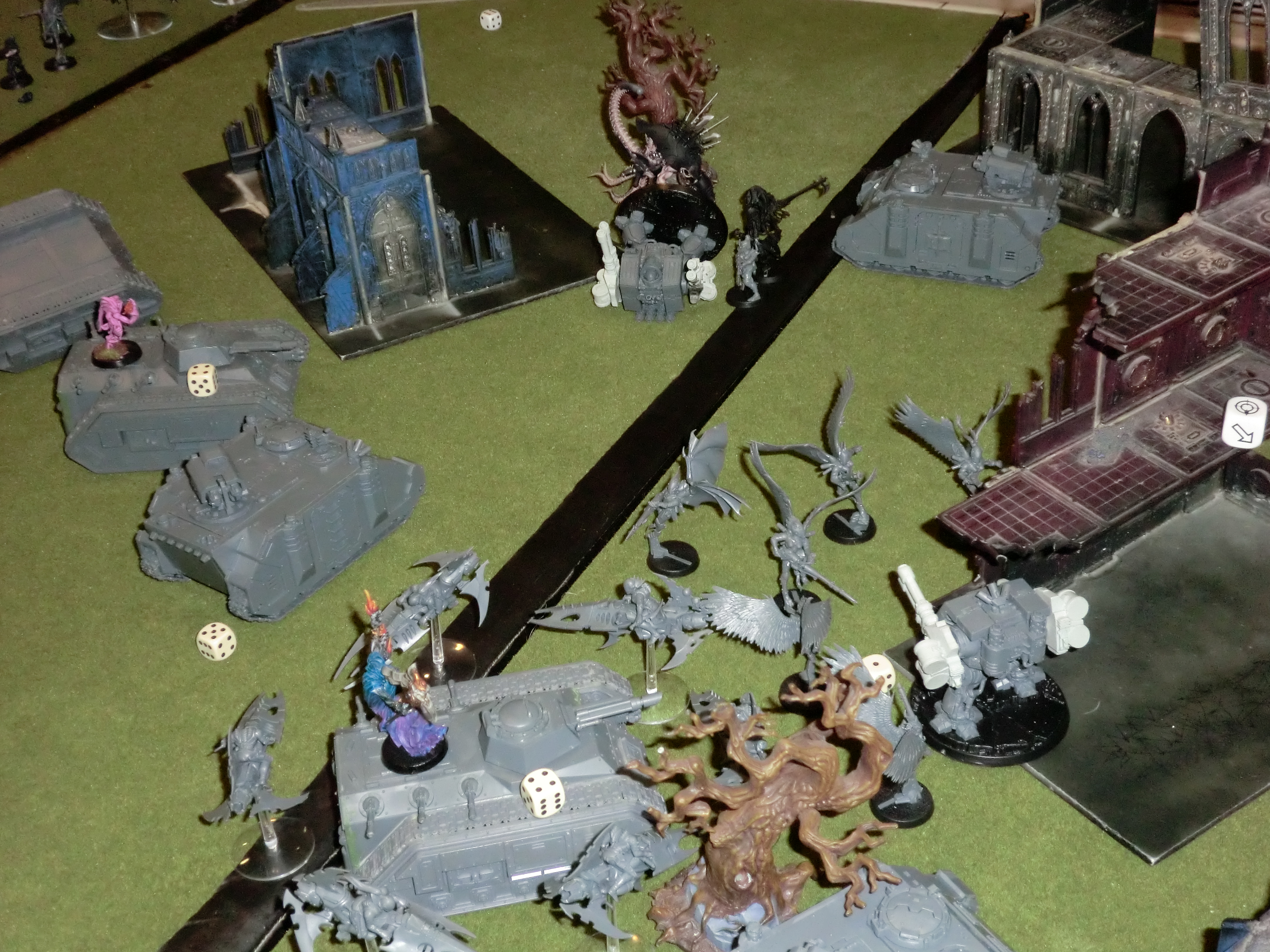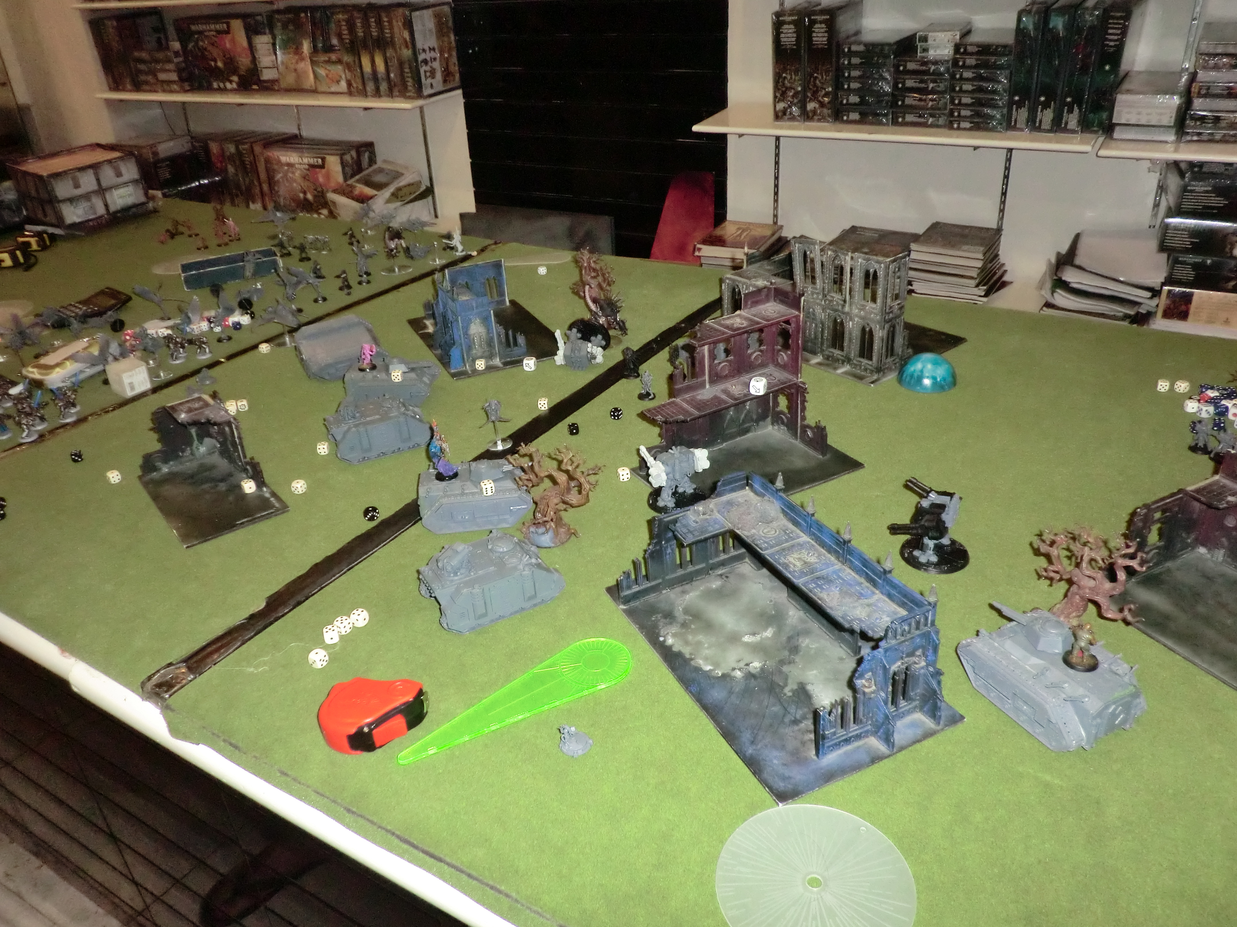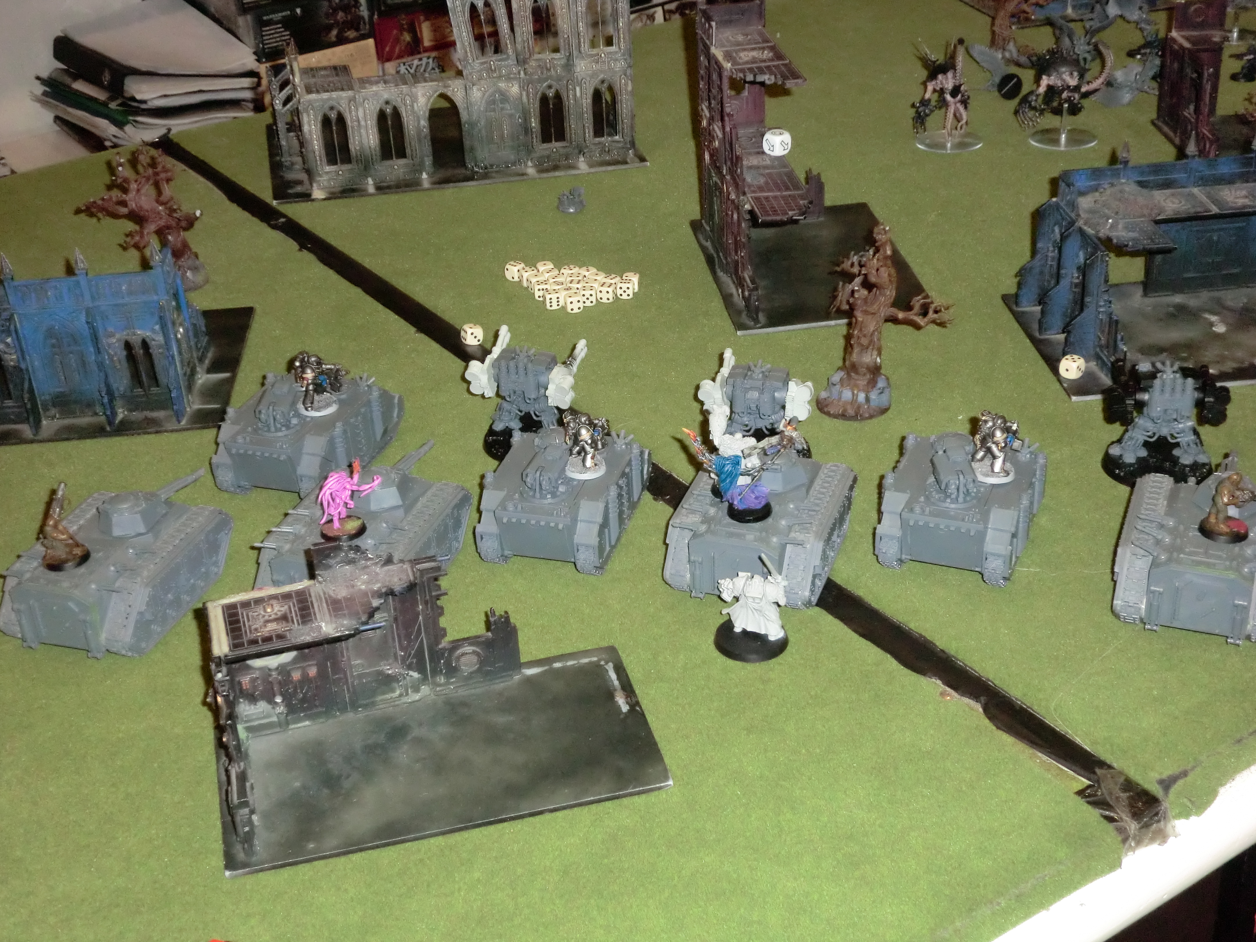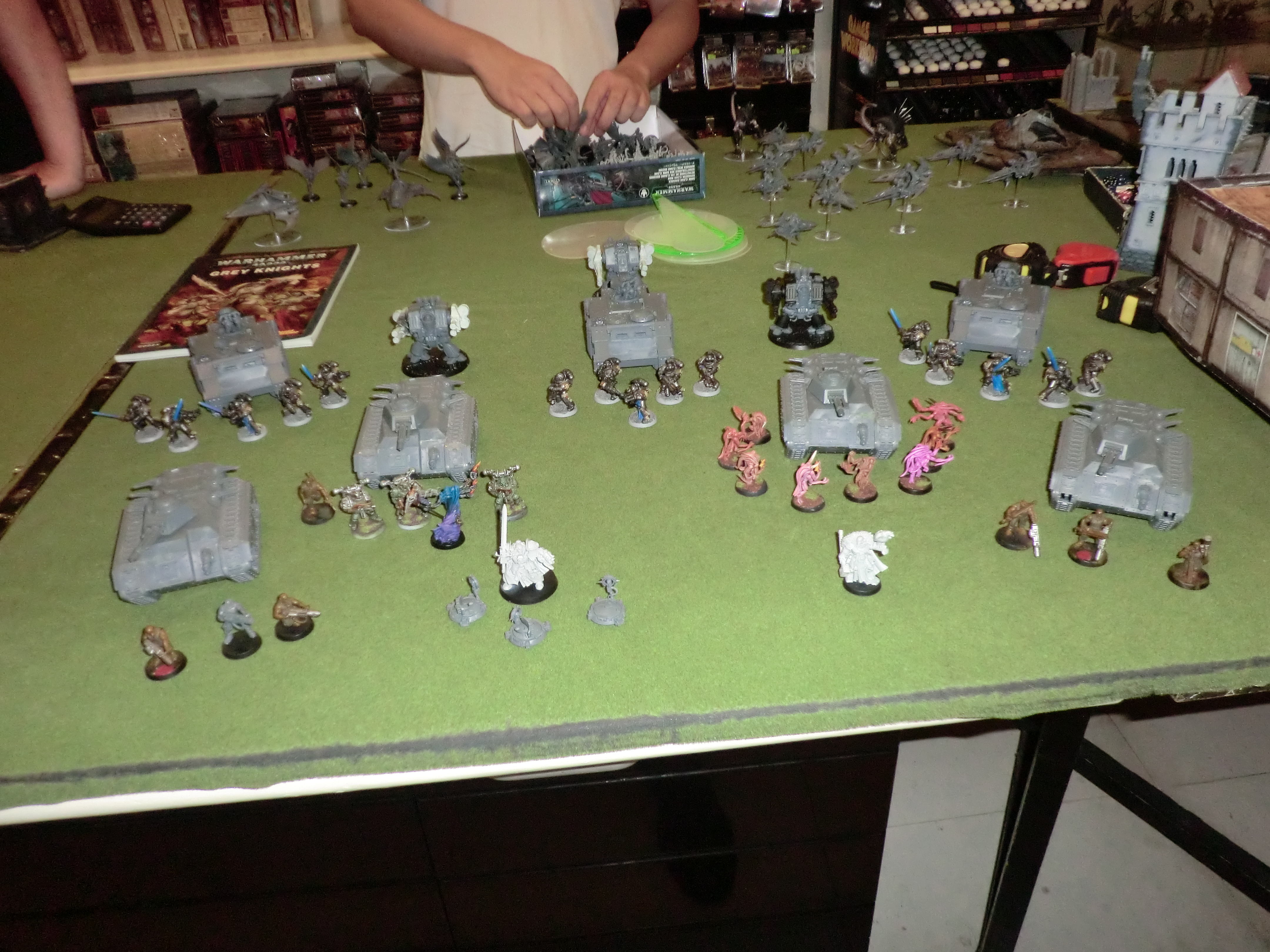 So I just had a game and since I am now in possession of a shiny new camera I figured I would give it a test run. My list (GK) is rather tuned as an allcomers whereas my opponent is still trying to figure out unit sizes and just which units to include in an upcoming tournament. Apologies in advance for the unpainted models, but half aren't mine and the other half just haven't got round to yet. I'm also new to posting batreps in general so this could be a challenge adding pics and all.