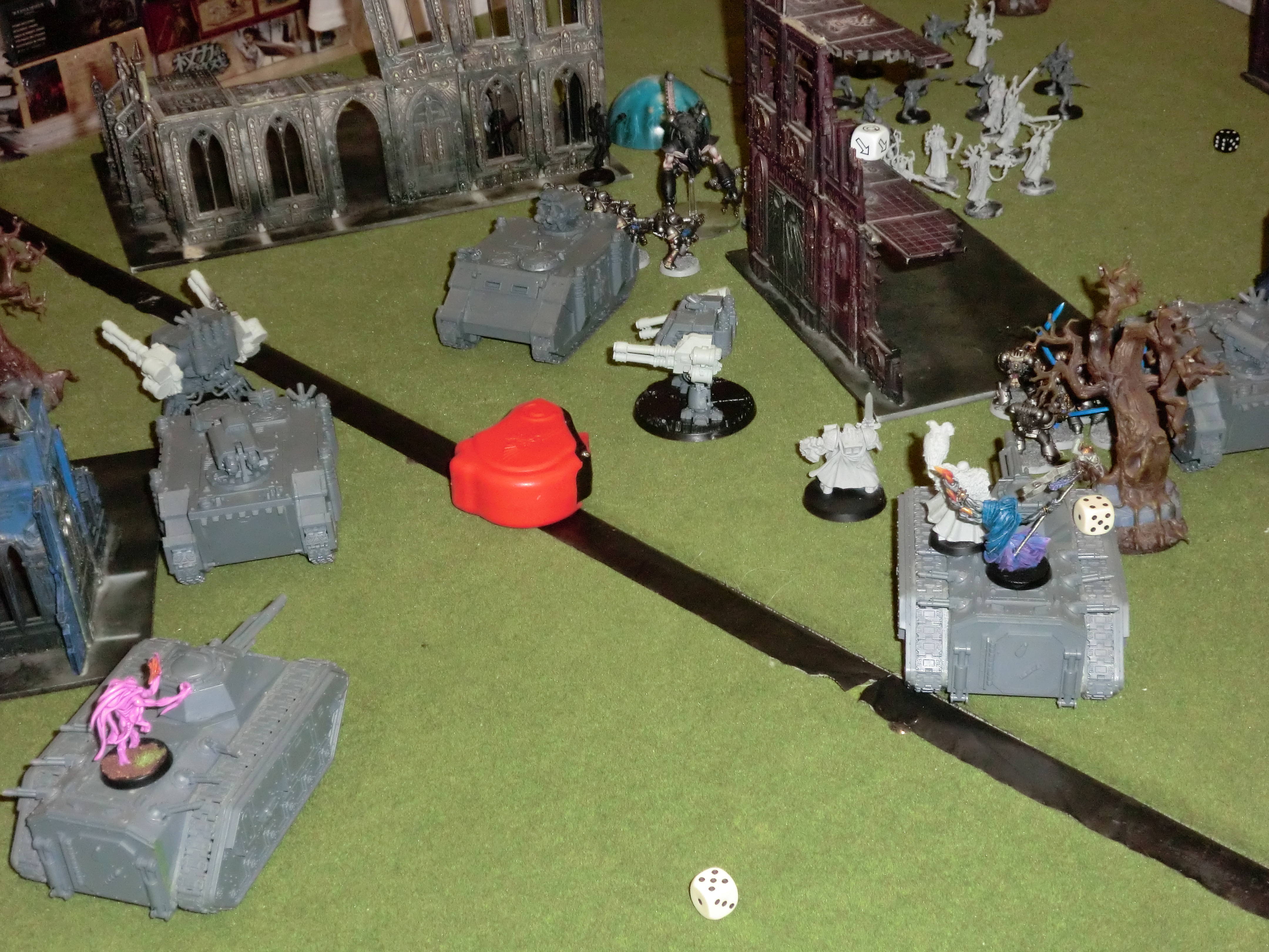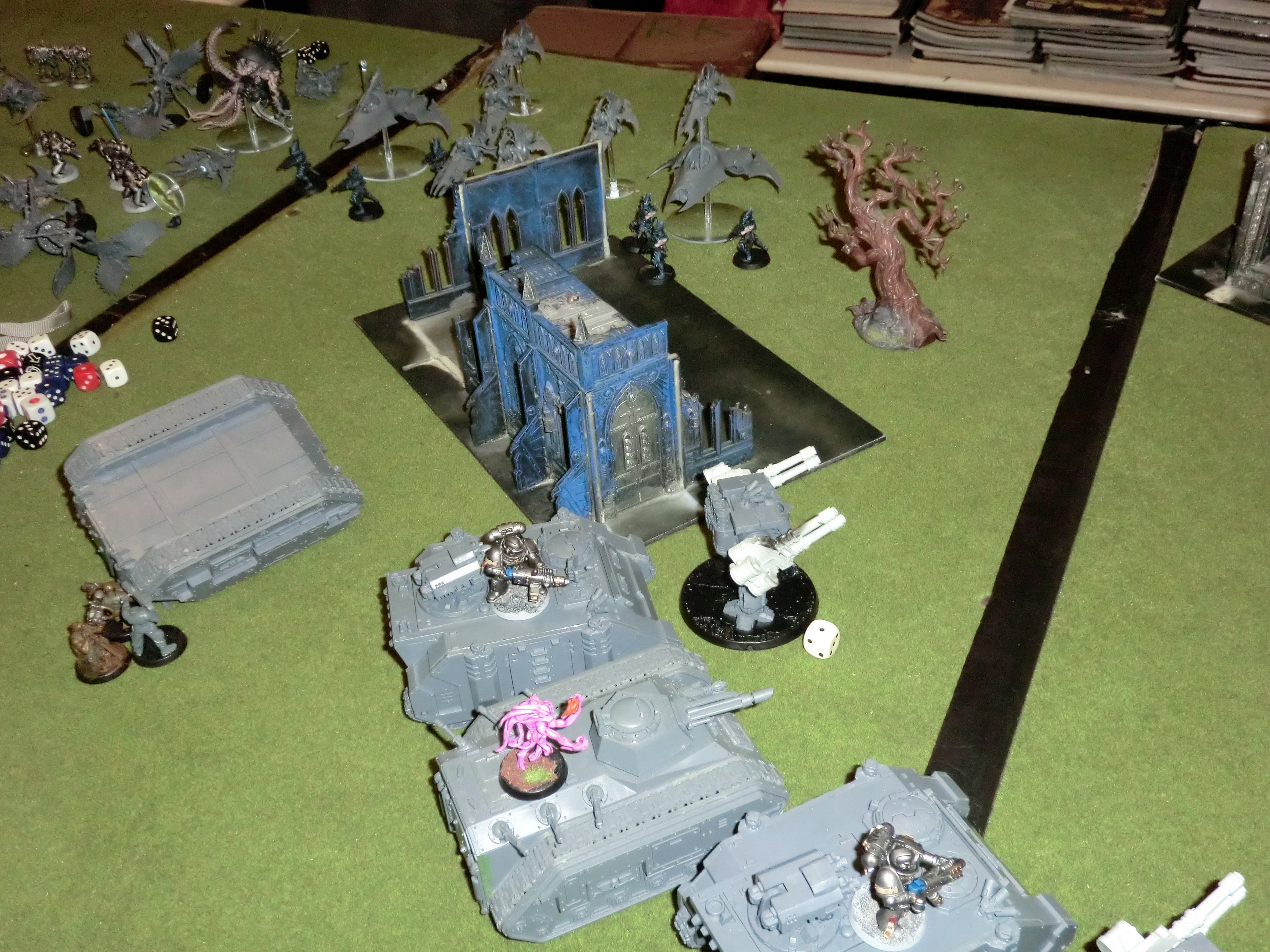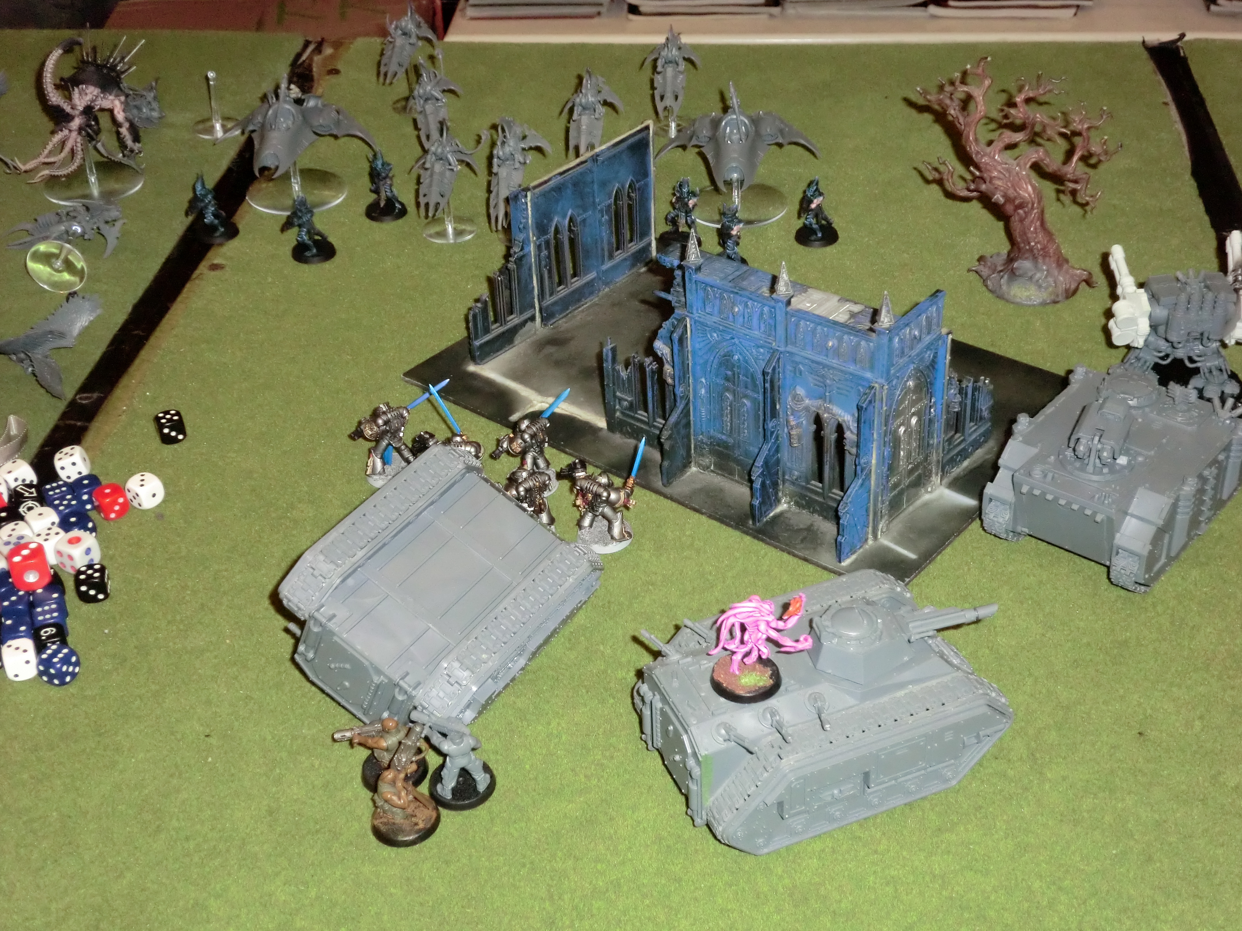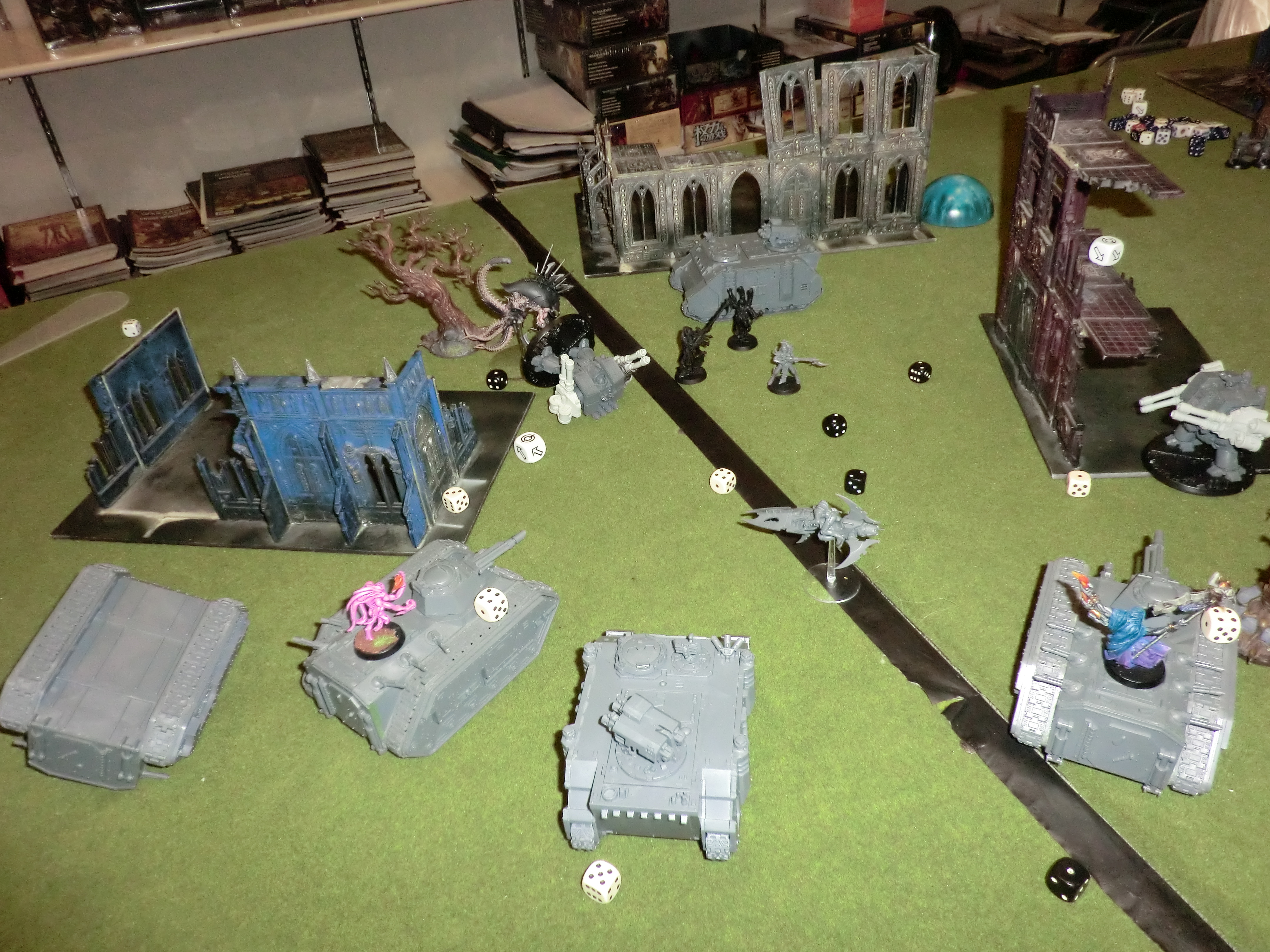 So I just had a game and since I am now in possession of a shiny new camera I figured I would give it a test run. My list (GK) is rather tuned as an allcomers whereas my opponent is still trying to figure out unit sizes and just which units to include in an upcoming tournament. Apologies in advance for the unpainted models, but half aren't mine and the other half just haven't got round to yet. I'm also new to posting batreps in general so this could be a challenge adding pics and all.