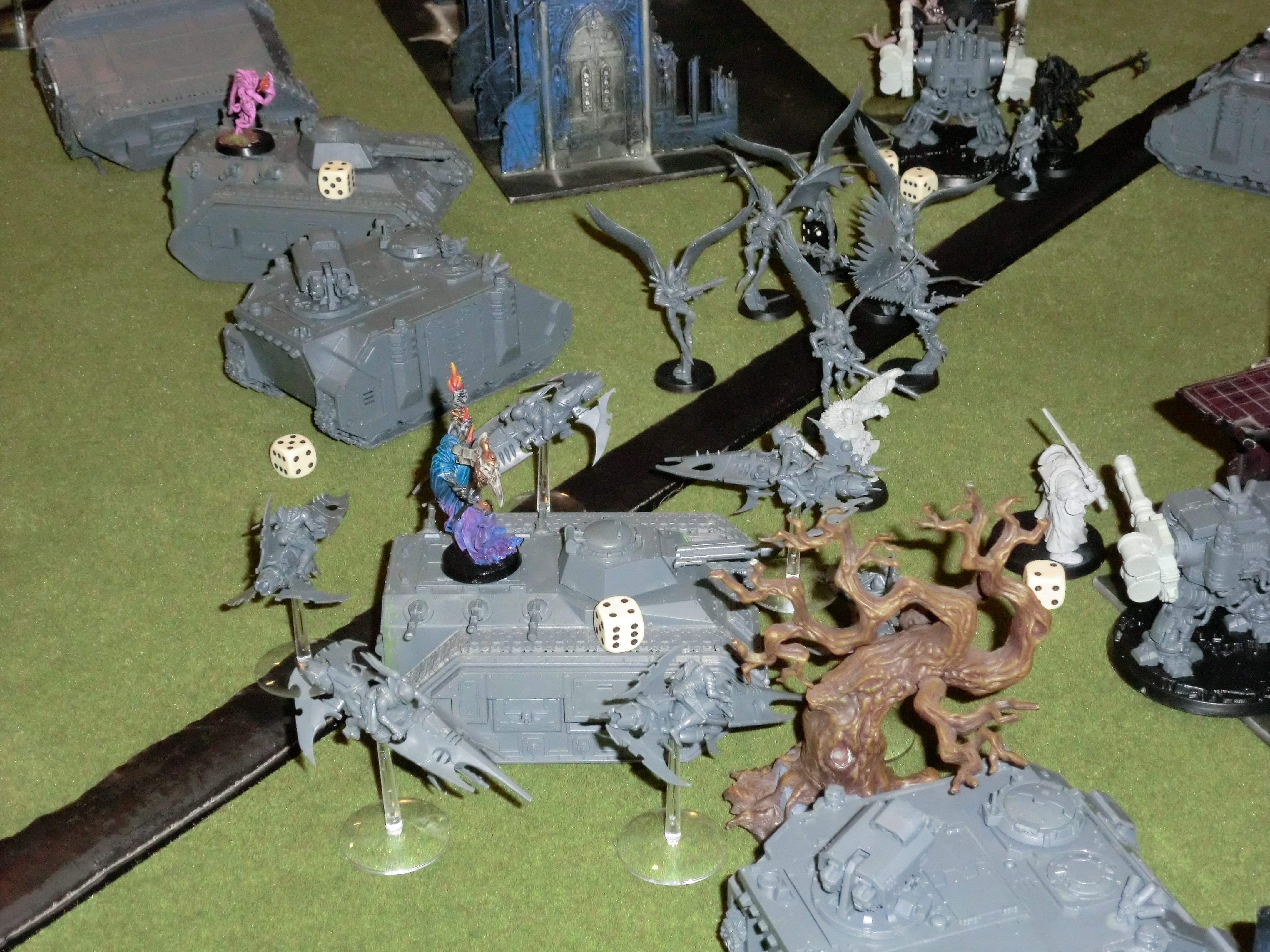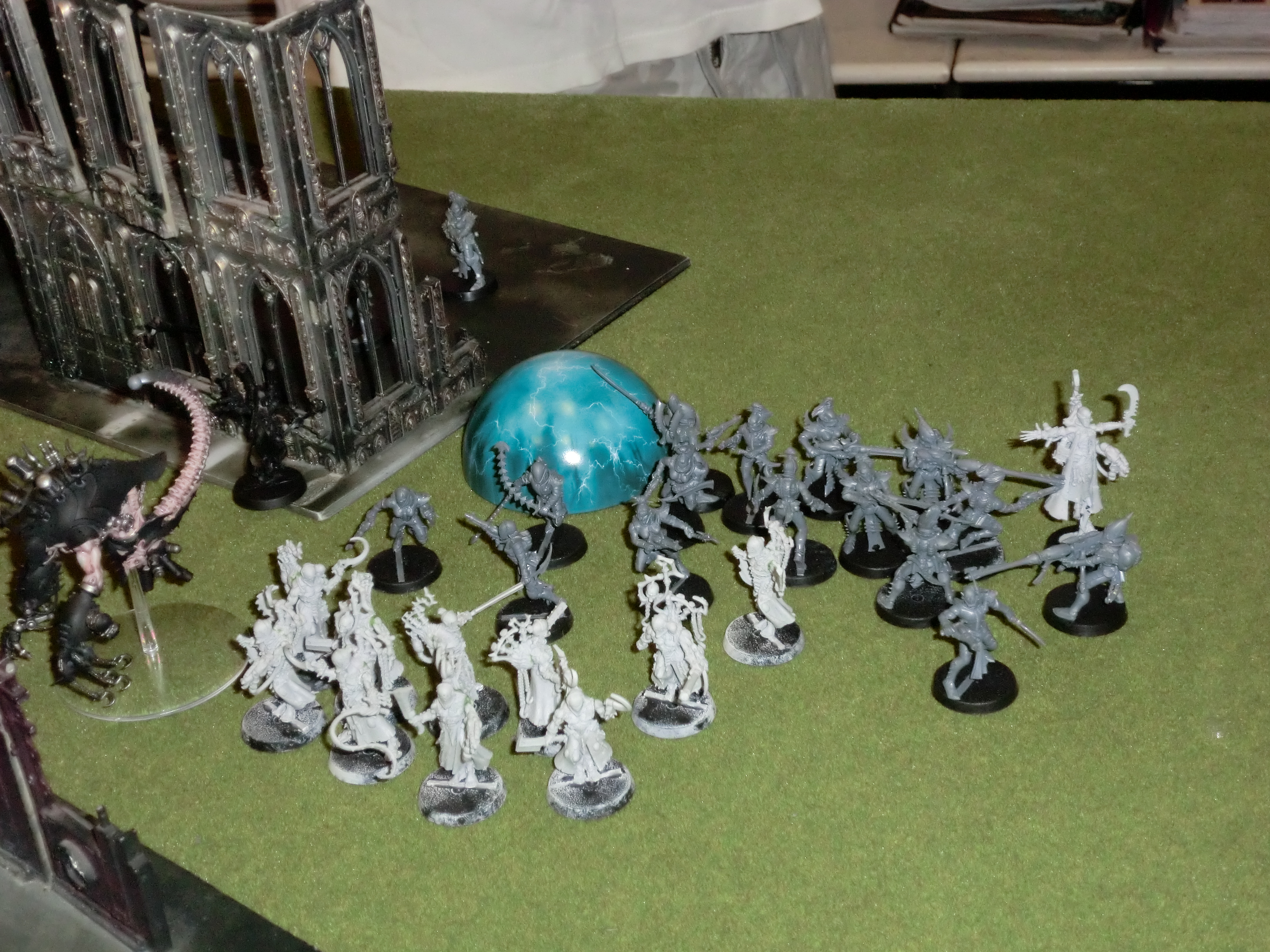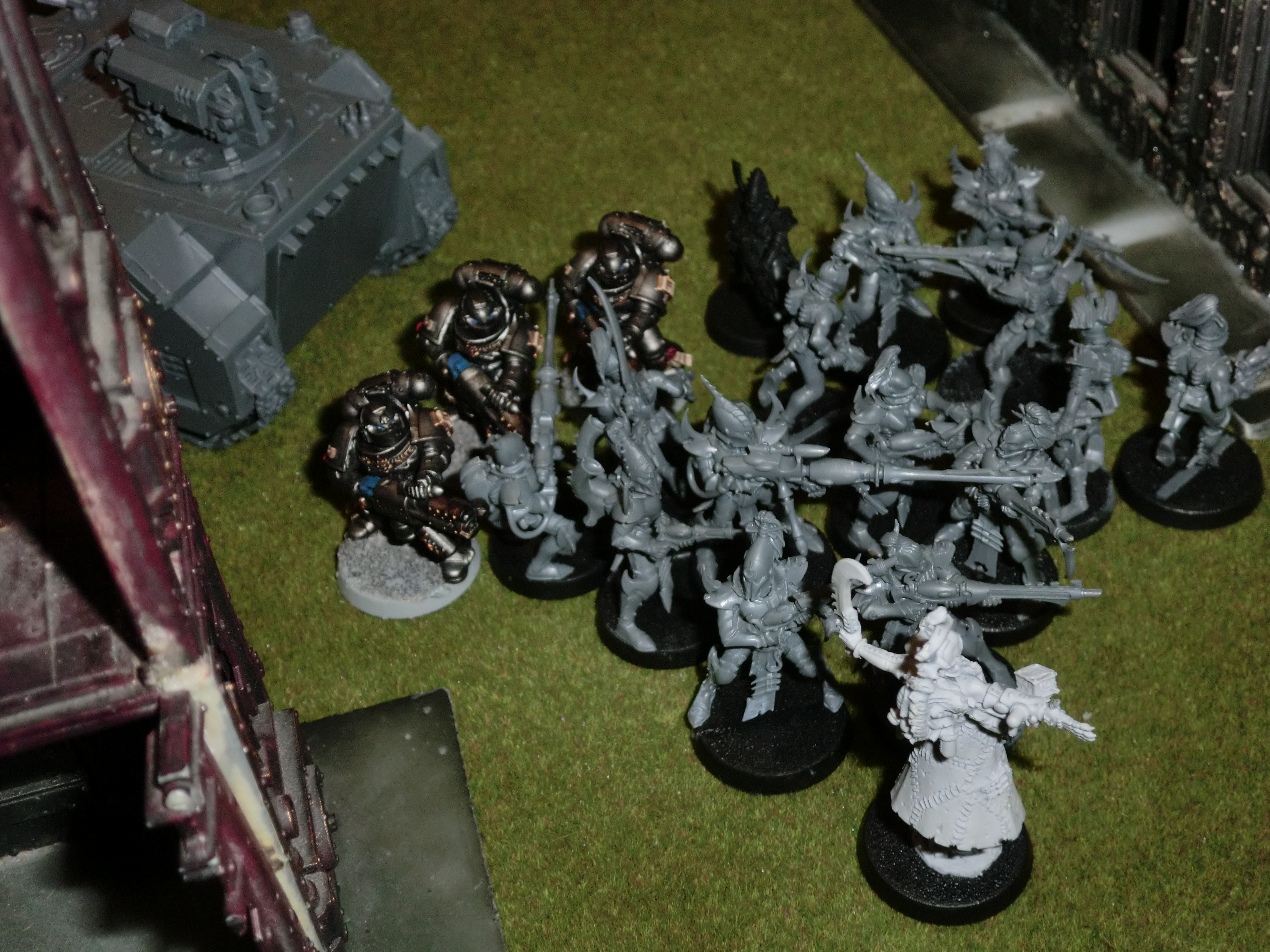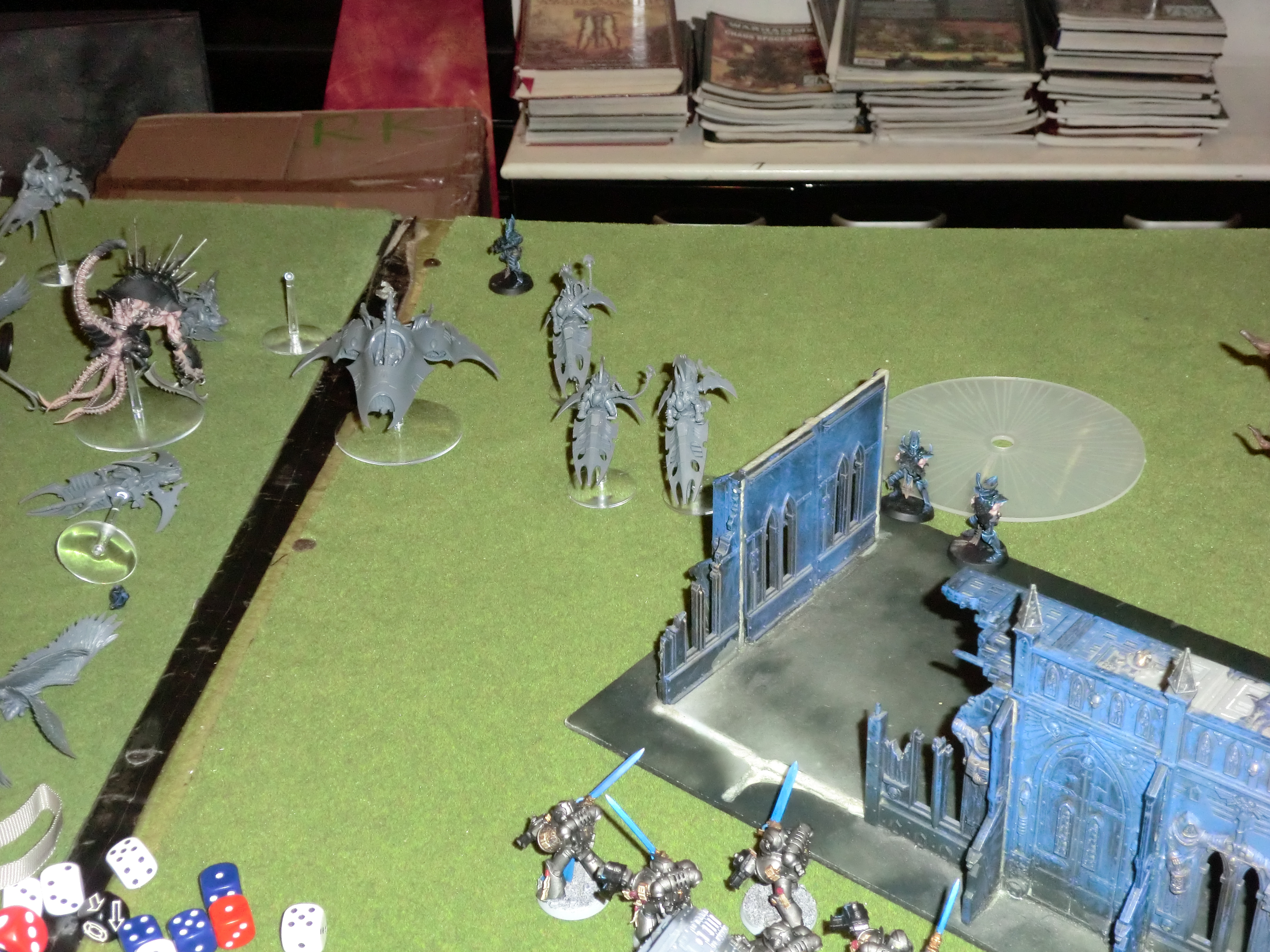 Good game. The WWP DE build is really a good build against GK's. Heck, it'll actually probably work against most armies. The only thing it needs are beastpacks instead of footslogging wyche blocks. That'll all but guarantee a charge on the turn they come out. Otherwise, GK shooting will prove too much against the fragile DE units.