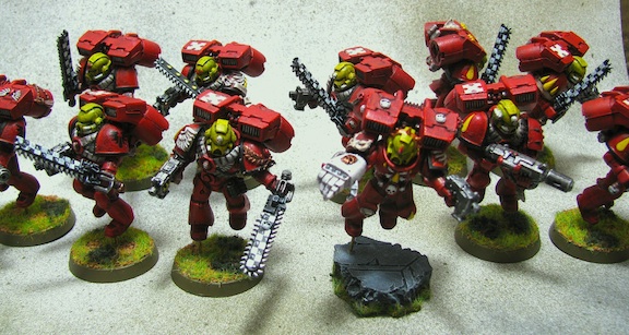 The sergeant has a special resin base, along with a power first. There are 2 Melta guns in the squad too, this is the most popular way to run them... If you want more pictures, PM me. I also will be selling/trading some other painted BAs too (assault marines on foot, razorbacks, etc).