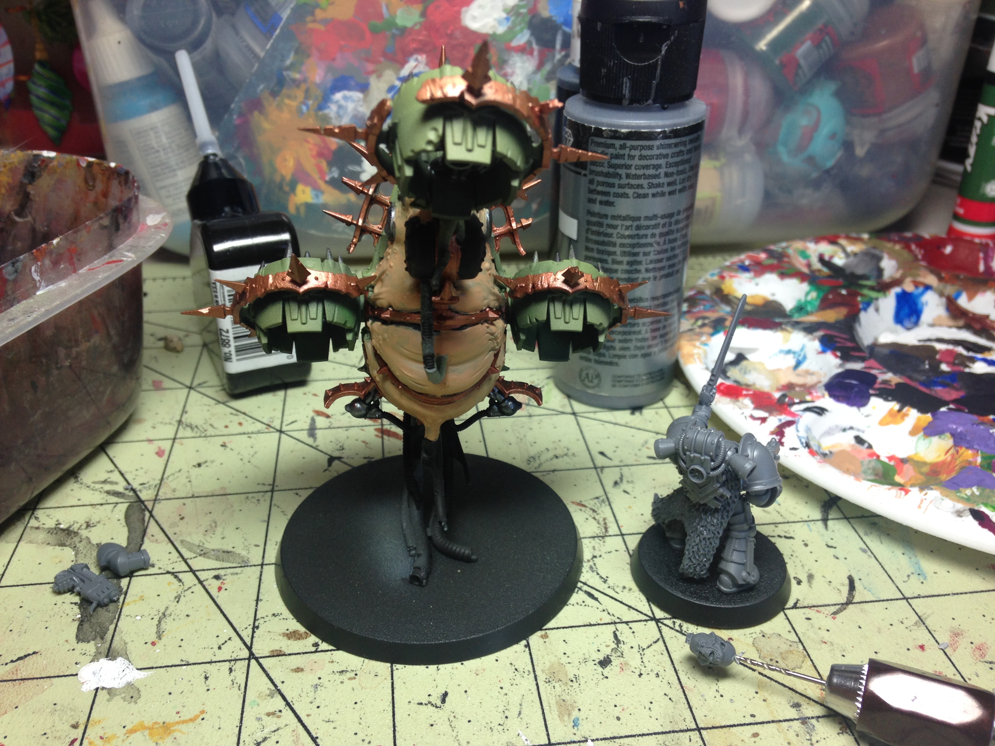 Beautiful work. I think you need some yellowish-brown sponge work, say around the pockmarks on the carapace. That would give it the right "diseased" feel.