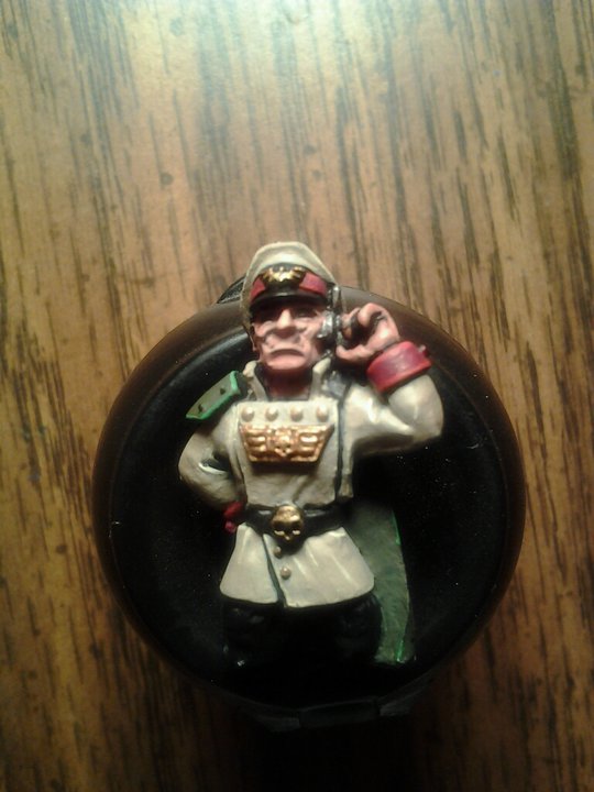 Just as proof in case you're not sold on the idea yet, I did that same Badab Black wash in the recesses + drybrushes of Graveyard Earth and Kommando Khaki on a somewhat darker blue tank, and got these results: