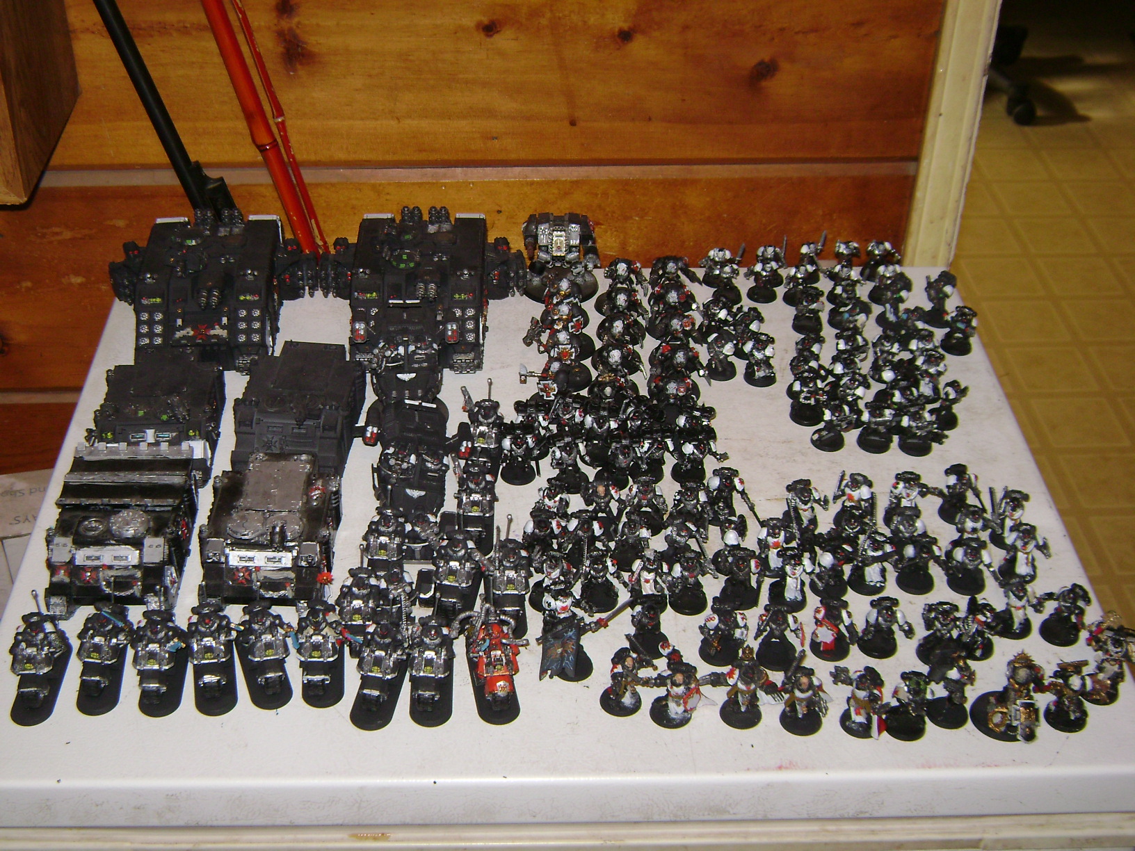 Ok this is my Black Templar army up for grabs. Even though they are Templars the models could be used to proxy any of the other books if you so wish to do so. I am not willing to split this out. My price for this is $550 and shipping will be $20 for the most part and I will ship out of country if the buyer is willing to pay the shipping costs. Anymore questions