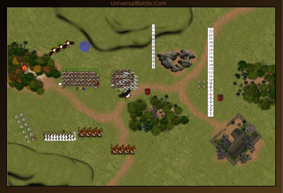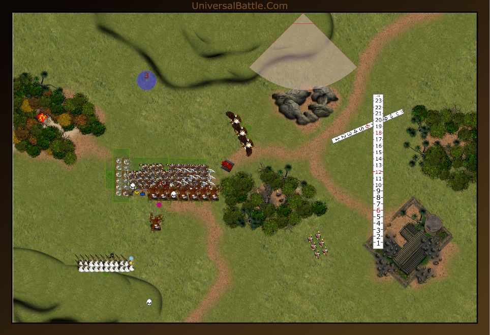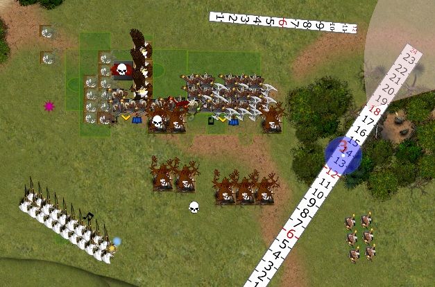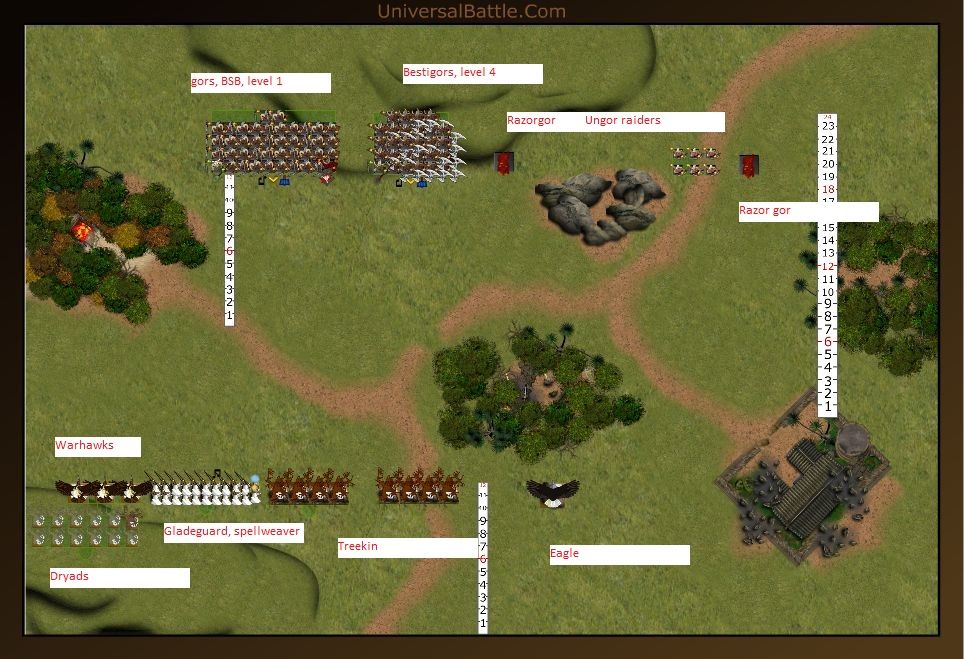 Gladeguard kill 3, ungors break and flee 10 inches, gladeguard pursue 11 inches
