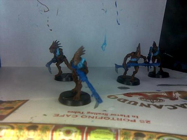 Dry brush those bad boys with a lighter shade of brown or mix your current paint with a little white.(even better) Maybe even do sharp details on their heads with blue or something for more contrast. Or do sharp detailing on the edges and snuff out the dry brushing all together and those would look SICK! Looking good either way man. I still need to send you the pic of my friends techno hammerhead, maybe the coolest Tau paint job ive ever seen.