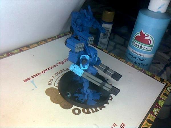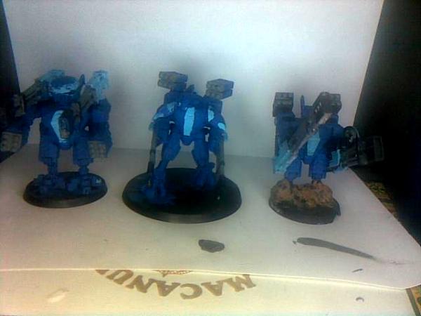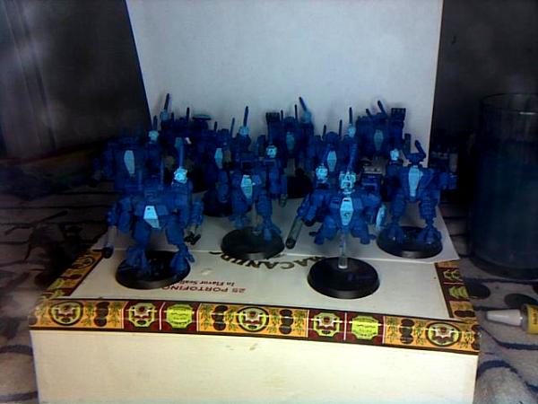 My friend did a similar color scheme for his tau, it's awesome. He painted them a Hoth style snow way. I very rarely see Tau in blue but it fits them well and they look cool. Basing them with snow would be sick.