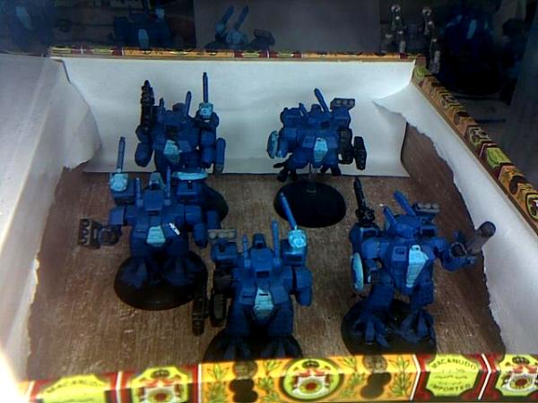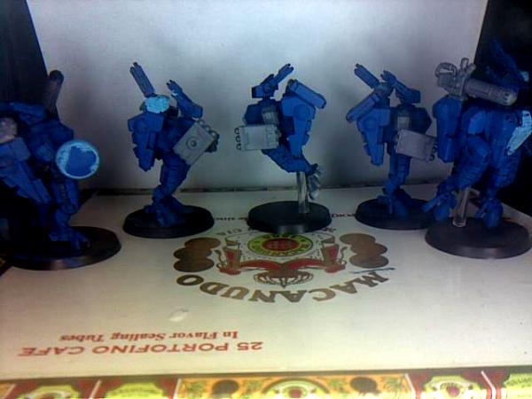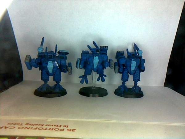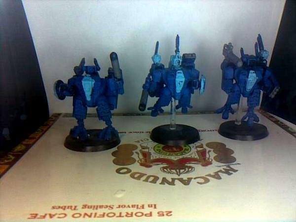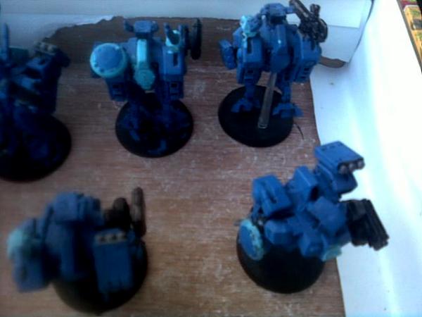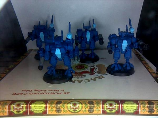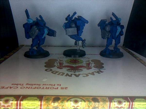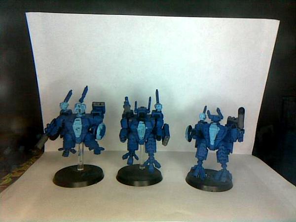 I am only showing models that I have FULLY Painted. Most of my crisis suits are painted, just not fully. The paints used are AppleBarrel (blue, Light Blue, Gray, and orange) and Games Workshop (Graveyard earth)