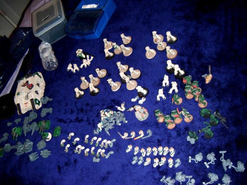 as it stands now, i have 6 squads of DW termies... 30 models. a land raider that can mount the Terminus, the Crusader, the redeemer, or any other combo of the weapons from the three kits( i like the idea of the Hurricanes, HB, and TW HB/ TW AC  make dem orks jealous of the big shooty thing!) 15 standard marines, and Tyberos (counts as Belial)---- OH and an Apothecary in Termy armour  AND a Techmarine Mechanic for the termies- the arms i have are---- 15 sets of Claws, 10 TH/ SS, 15 PF, 4 Swords, 15 Stormbolters. thats not counting the Scibor mini... he came with a shield and sword, i magnetized both, and also a TH for him. Pics are posted--- gonna post about 3 more, give me a minute