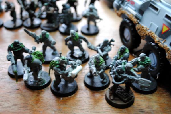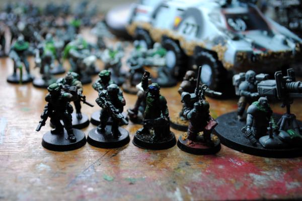 This looks like a pretty unique guard army. By the way, I love you weapon team. Im been trying to come up with new ways to represent them, you got it perfect. Im going to have to steal your idea, its perfect. Reminds me of the FW Sabre platform.