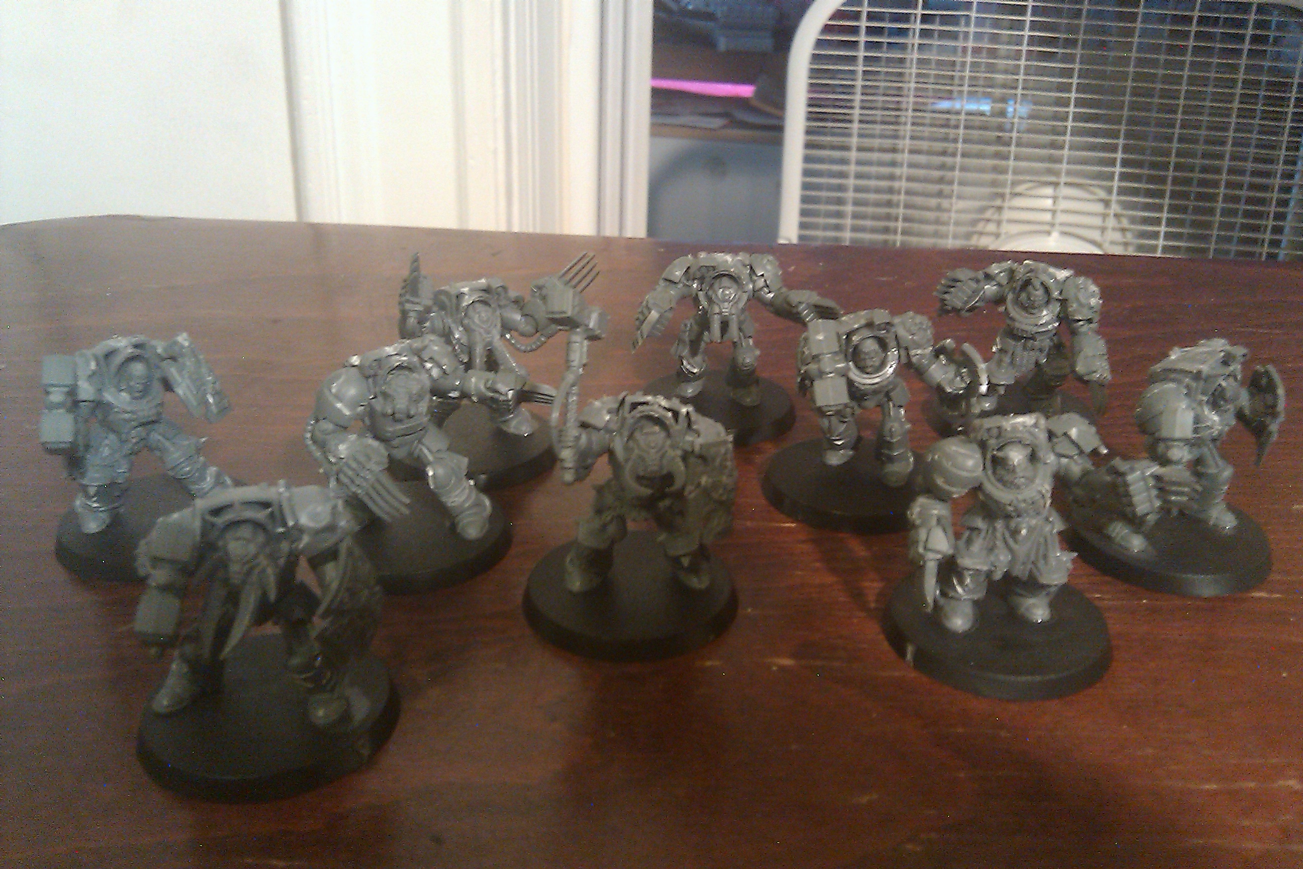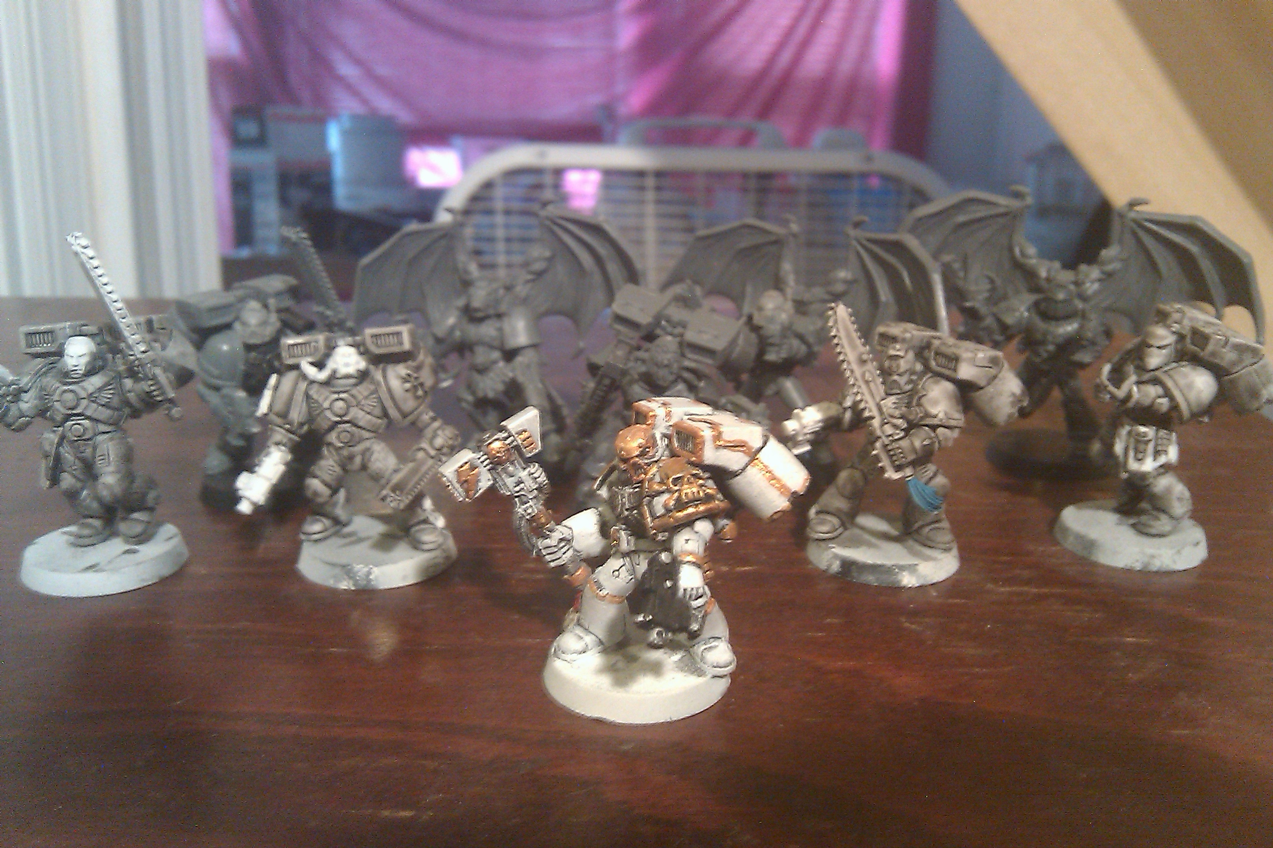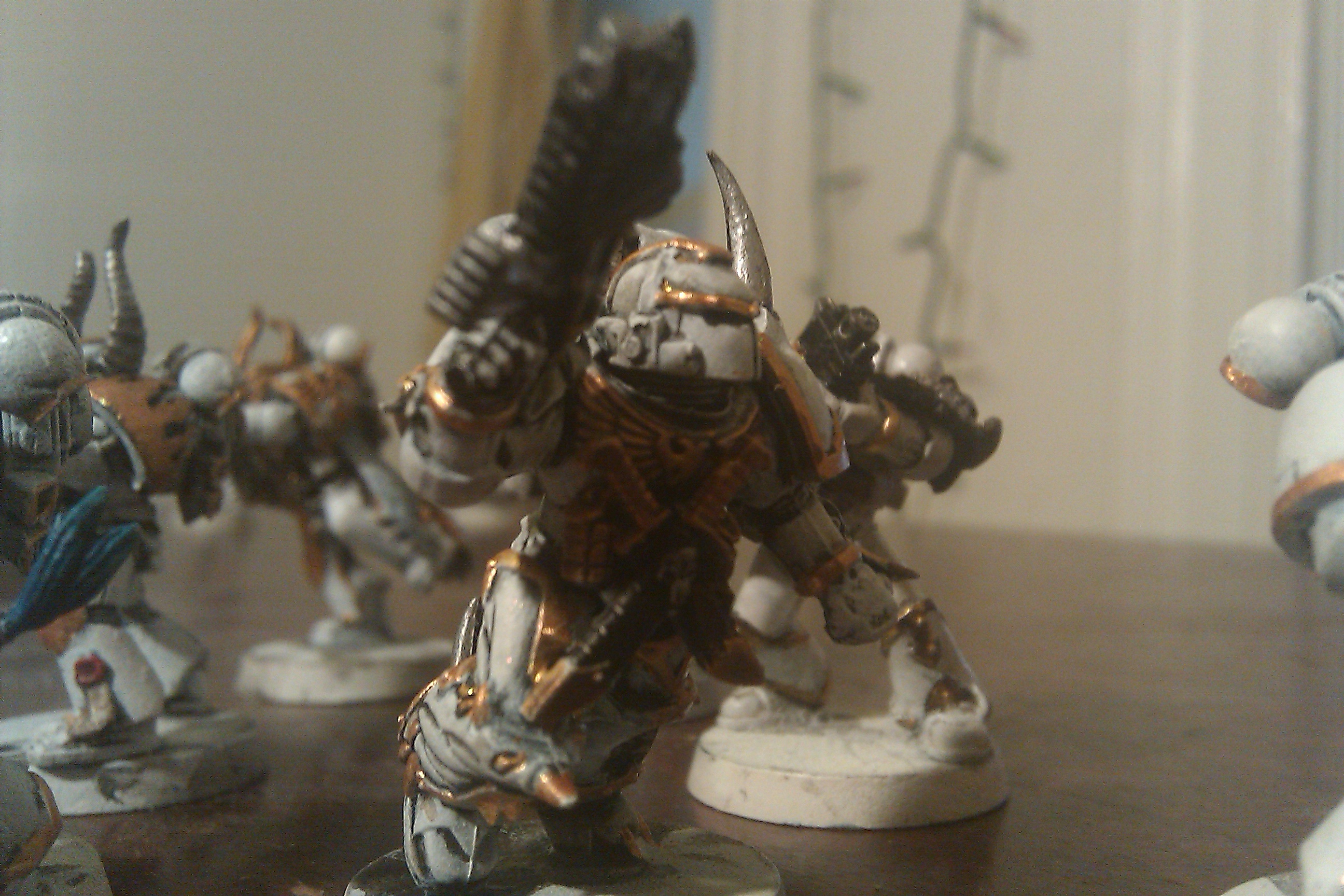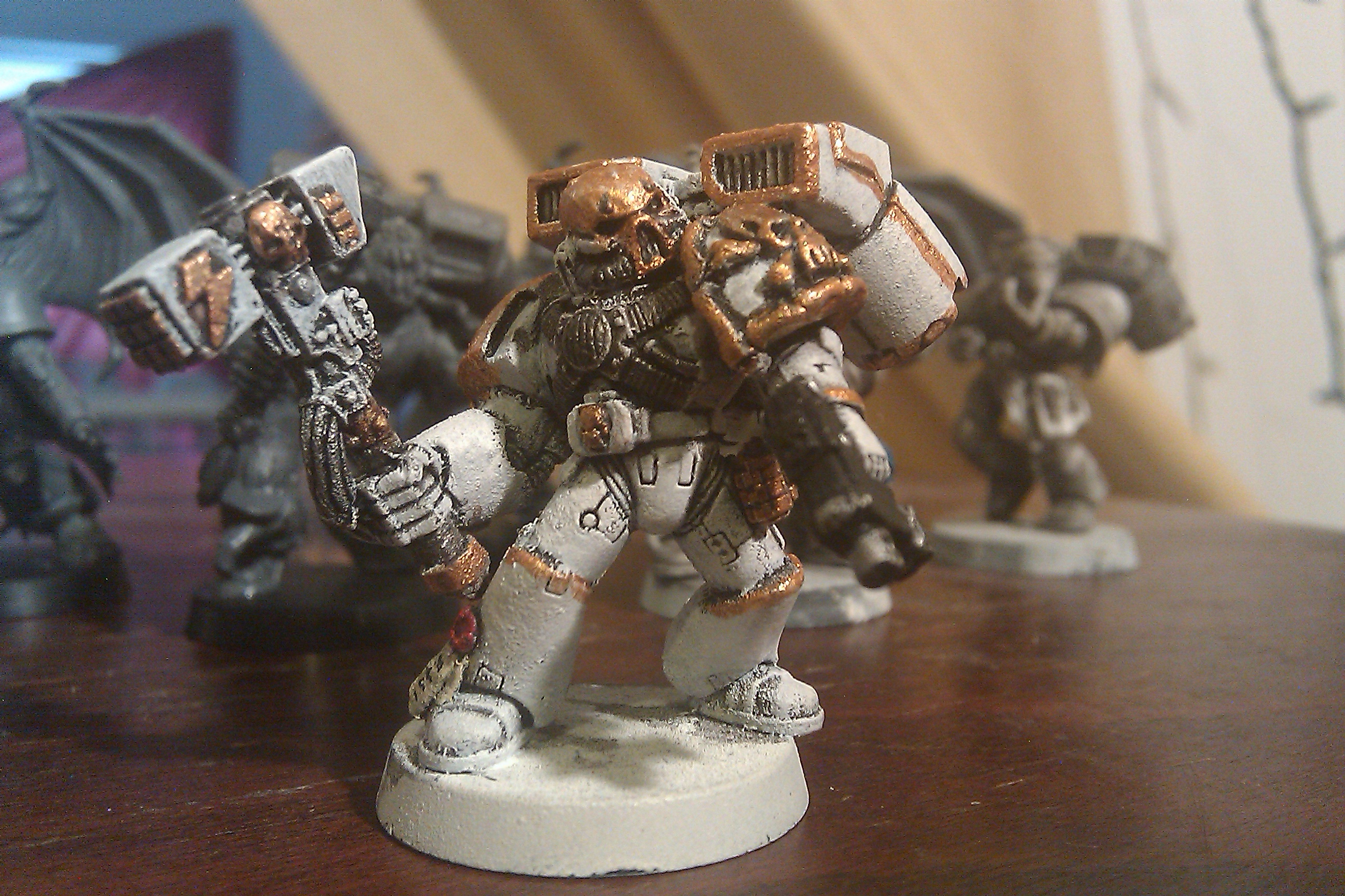 Here are my Assault Termies, My "Lysander", and Librarian in Terminator armor. I'm going to chain beheaded deamons to him eventually.