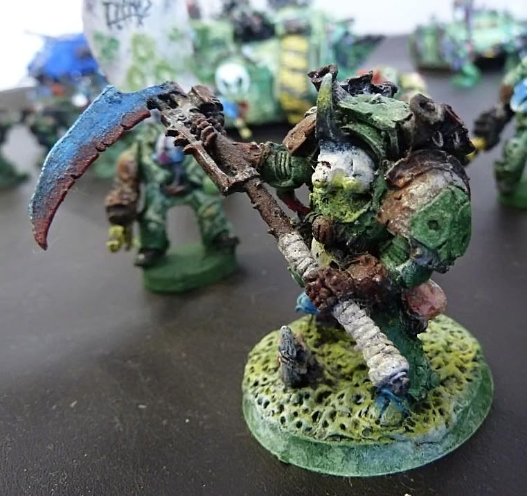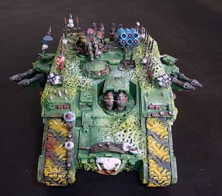 Moldy plague marines, now that's a new spin. One critique is that the striped land raider tracks look a bit odd on the model.