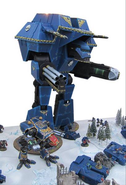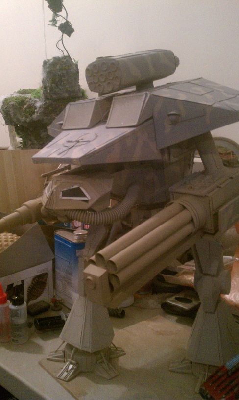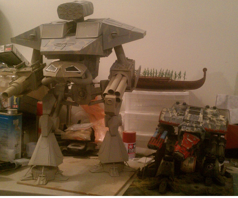I'm glad everyone likes it. When it's all done it should have running lights, a sweet sound system, and a base to make it go with my Warhound and Knights.