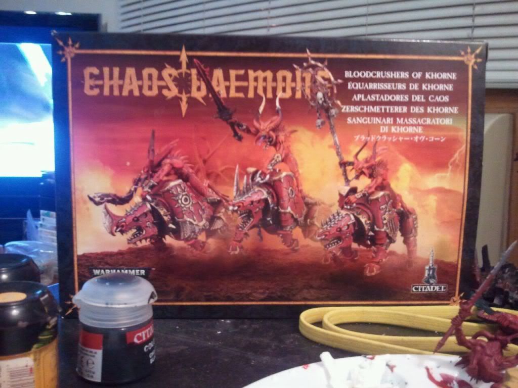 The first project I'm starting on is actually the reason why I pulled these guys out in the first place--a 1000pt doubles tourny list. I figured 1000 points would be a manageable size to begin with. Instead of being overwhelmed with "how do I begin?" I'm just going to tackle this Khorne list and get a small chunk out of the way.