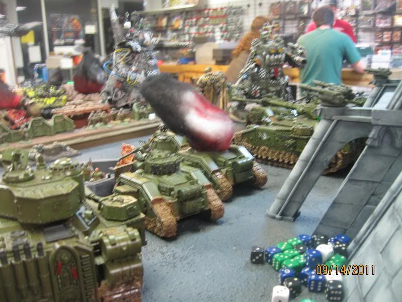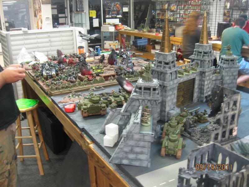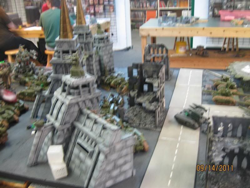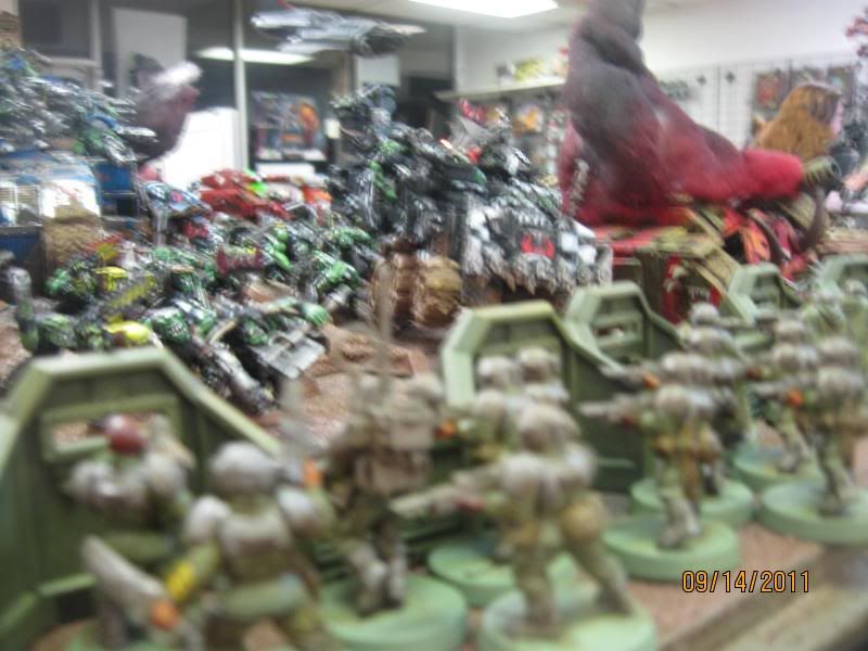 Sooooo much blur! From what I can see though it looked like an awesome game on an awesome table with awesome looking armies. Wish the pictures were easier to look at.