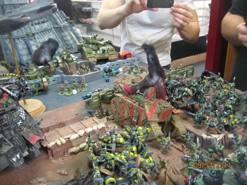 Were did this battle take place, that wall seems very familiar to me and I recognise several people in the back ground. The Apoc pics look great and I am sure that the Imperials crapped there pants as the gorgant tore through the wall. Can't wait for more battle reports here.