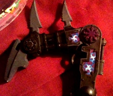 I painted the machine body with chaos black and have started highlighting with Adeptus battlegrey. I hate HATE working with black so this highlighting part has taken about a month to do. Its still not finished. I cant stand looking at black for longer than a hour!