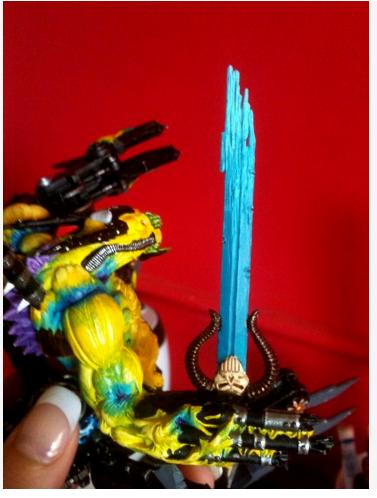 After i had blended all my colors and gotten the look i kinda wanted. I started to highlight. I used warlock purple mixed with white. Scab red. Sunburst yellow on the front yellow parts.