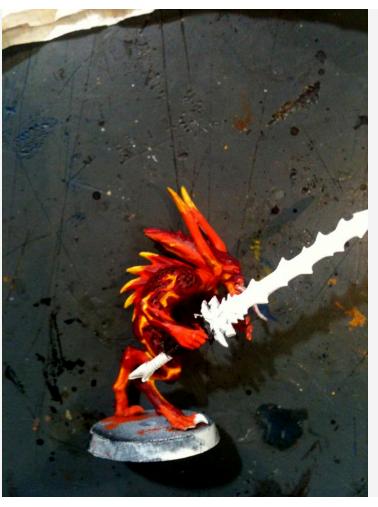 You also can paint your swords in this step. I gradiented my swords. Since they are hellblades i kinda wanted a fresh bright metal look out to a cool to touch black/red. You can paint them plain red with yellow lightning or blue or whatever color you want.