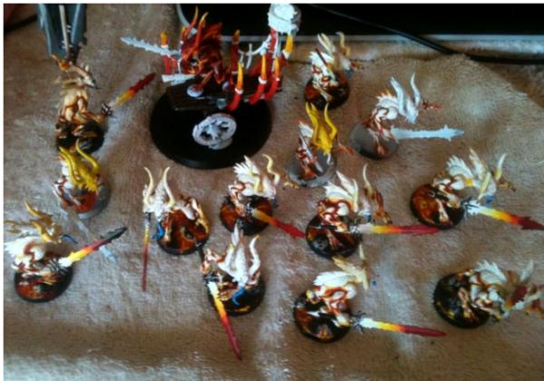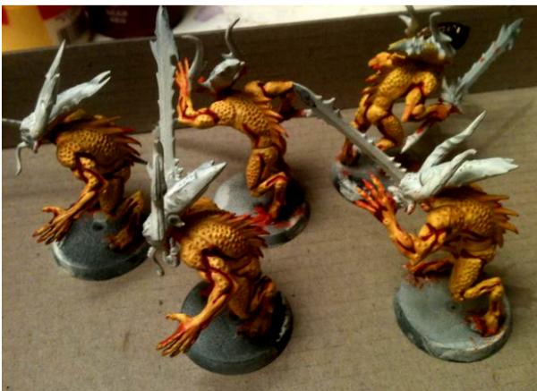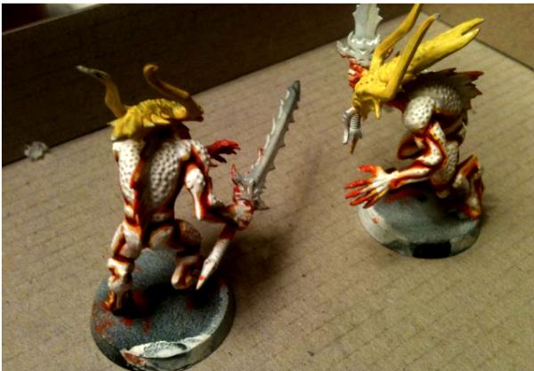 * in this pic, there is hardly any orange on my models. I stuffed up and painted to much yellow. But you can see the basic effect we are working towards*