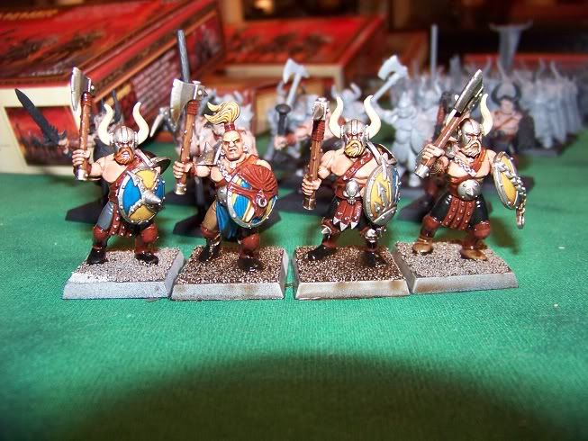 About 60 Warriors of Chaos (15 finished) - I got these already assemebled of ebay. I want to get some more to make some Halberd Warriors
