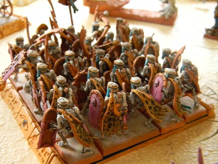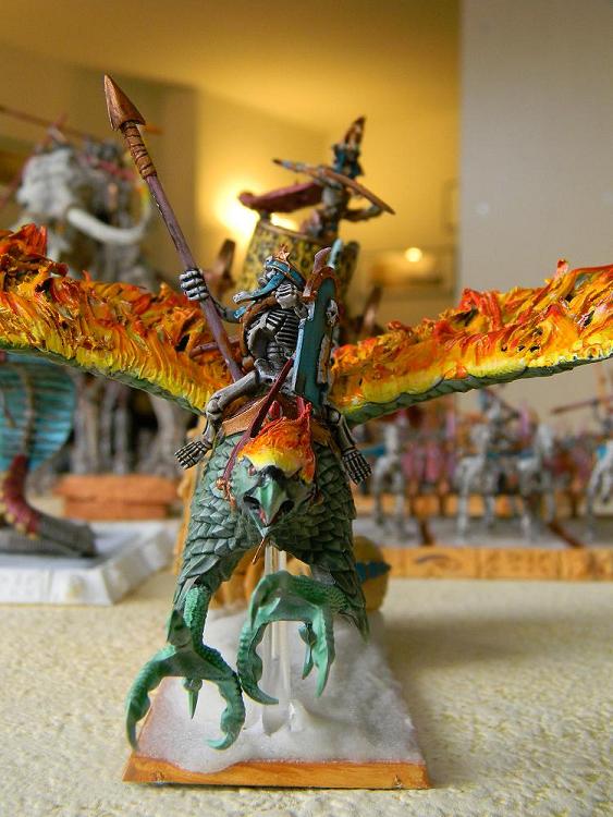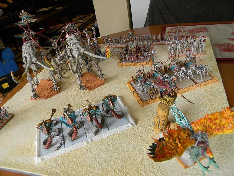 I figured I would put up some pics of my Tomb Kings army as I bring it to completion. The mammoths are war sphinxes, and the flying guy is (usually) a necrosphinx.