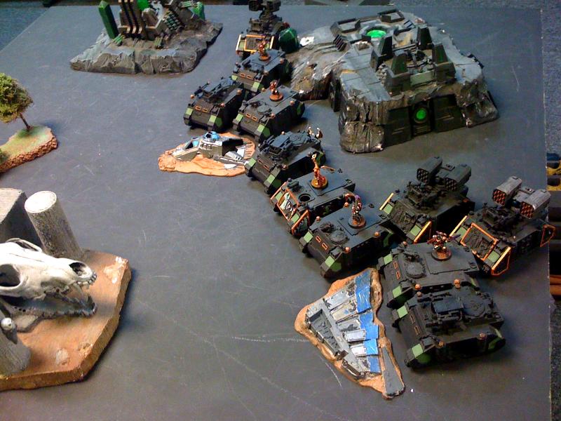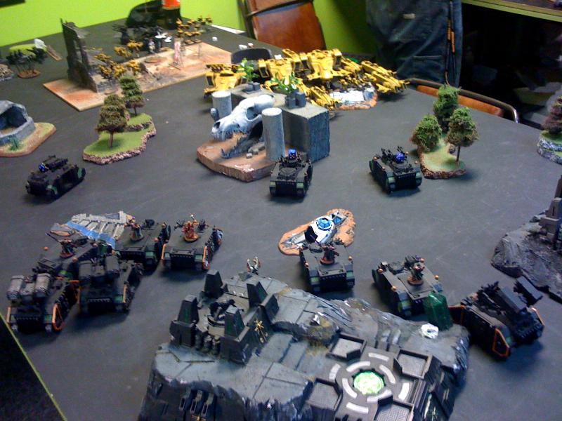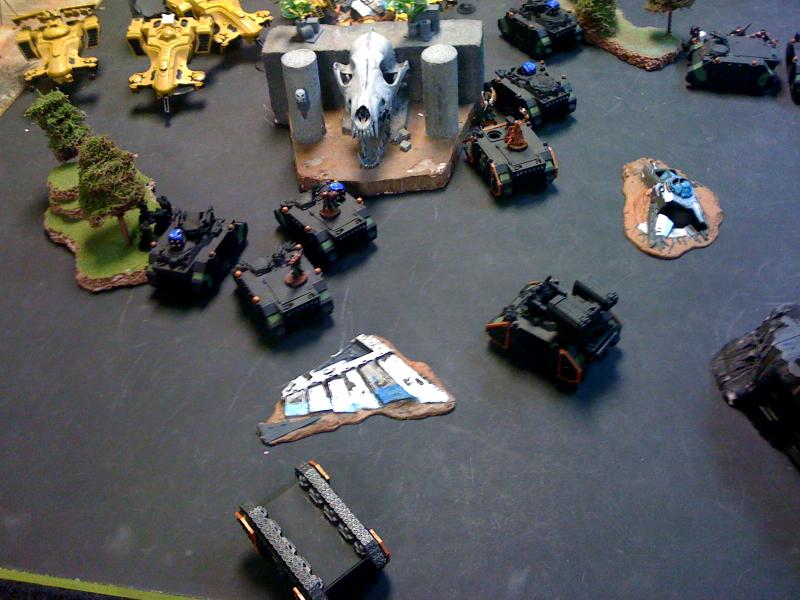 His list is definitly light on anti-tank, his broadsides had the sms and a.s.s. on them I just didn't list it because they never moved during the game. His biggest issue was just deploying so close, I really don't know why he didn't castle in the back corner. I don't think he realized just how close I would get to him with the scout moves on the dominion squads. Saying the dominion have scout is a big difference to actually seeing those immolators move 18-24 inch's before he gets a turn. His other issue was putting the stealth suits way too close to me. They had fusion as well, but they died the first turn because I was able to rhino up on him and double tap.