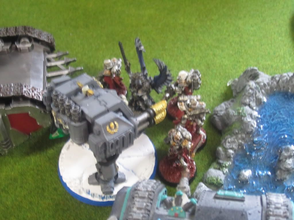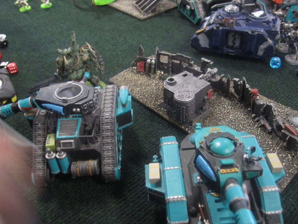 In the combat phase, Grulgor charged the Russes, and quite predictably, wrecked one, before turning and bending the turret of the other into a pretzel. Hmm, so much for battle cannons of death.