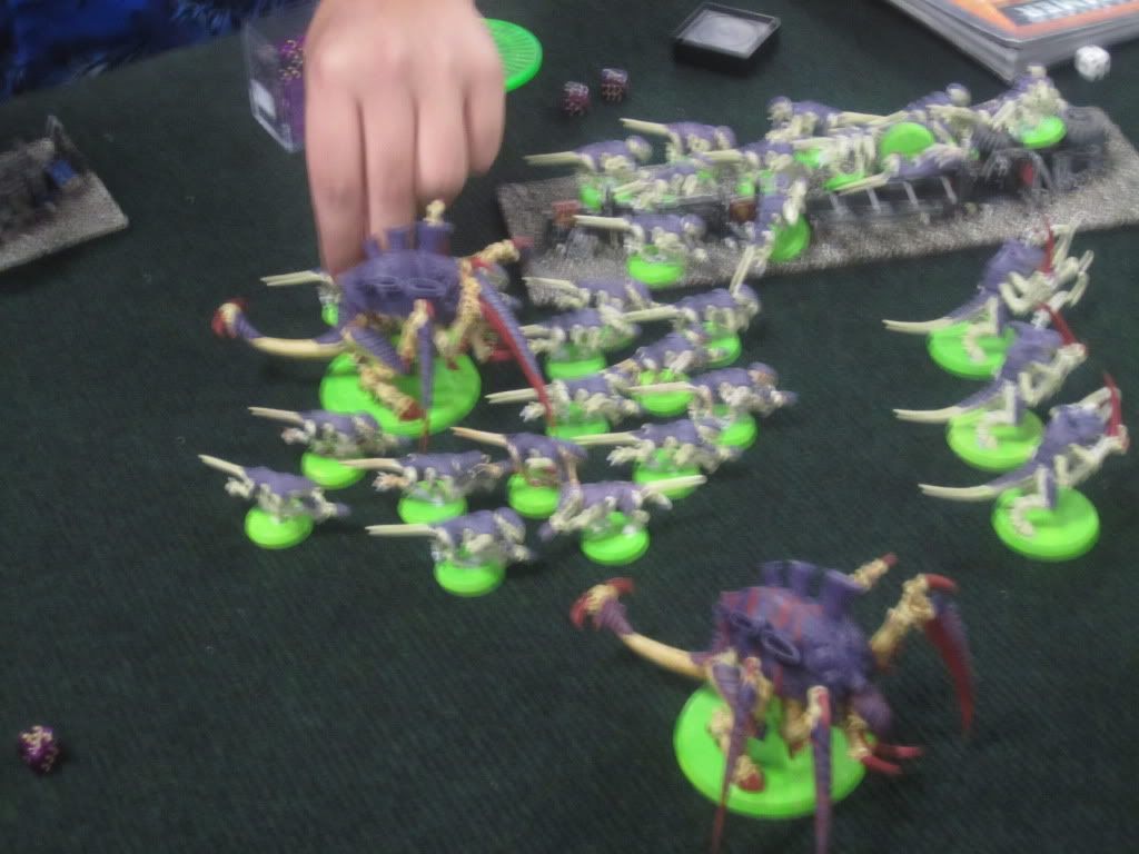 At that point, one of the Tervigons went into labour and birthed thirteen new Gaunts, though she immediately went sterile after rolling doubles. Sadly, neither the Chaos forces nor her fellow Tyranids thought to congratulate her on her new arrivals.
