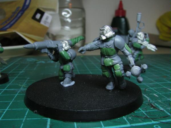 I used Kasrkin for my carapace vets. However if you're put off by the price then I vote for the GS approach. I did my CCS that way and it worked out ok: Another option, if you can get the parts easily, it to use Tau legs. They are nicely armoured for the job, but need some fiddling to match up well with human boots. I used this method for my Stormtroopers, with additional GS on the torso and arms.