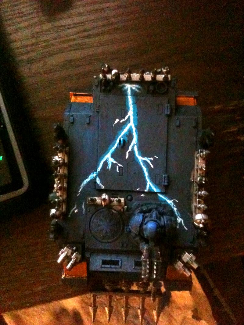 This is my first attempt at doing the lightning effect that makes the Night Lords who they are. C&C greatly appreciated. Rhino itself is WIP, so I realize the marine and many other details aren't picked out yet. Thanks!