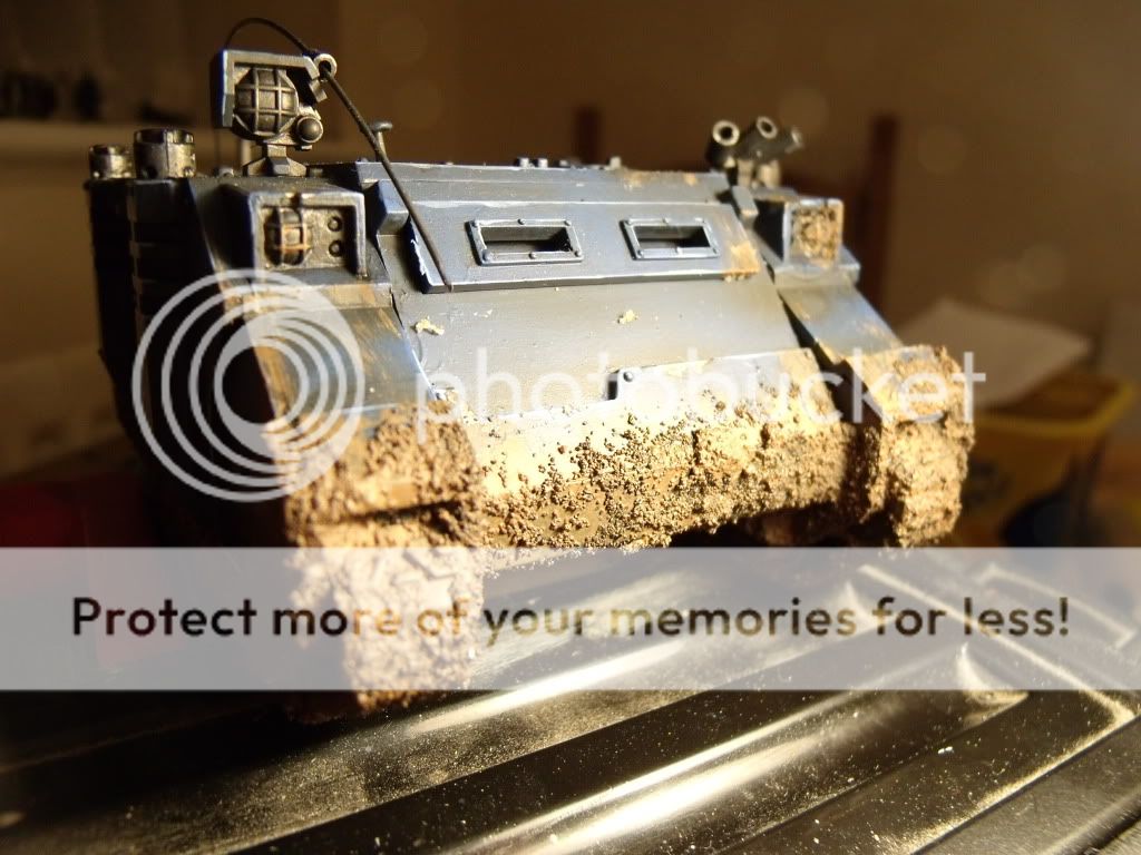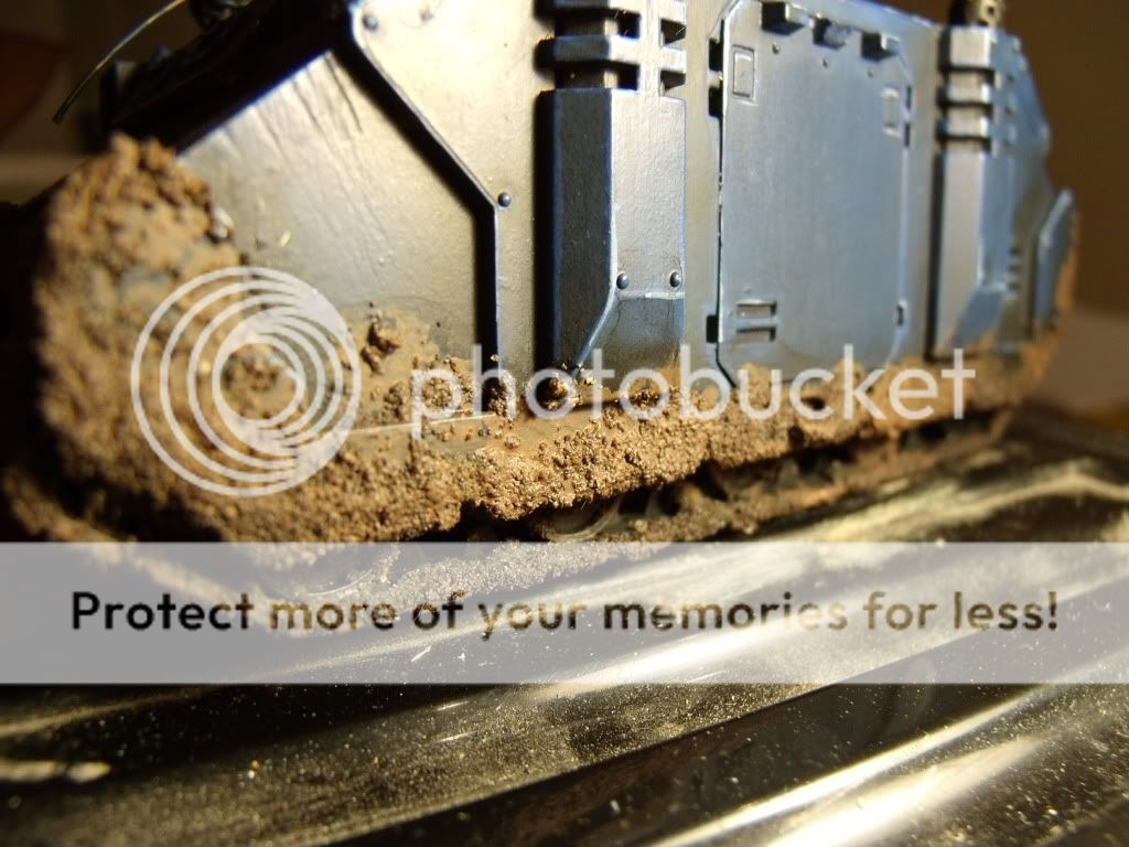 glad somone likes it, i know its a bit ott but isnt all 40k? its just sand and pva, painted up. pva on first fairly thick then dip in sand then smoosh arround with a brush. repeat as required then paint. i think those pics were before i airbrushed il take some more.