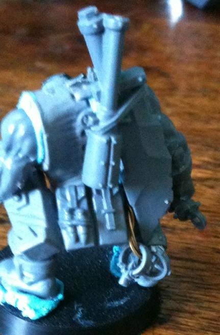 If it's unclear what he's holding in his right hand it's a Tryanid skull. His good luck charm I suppose.