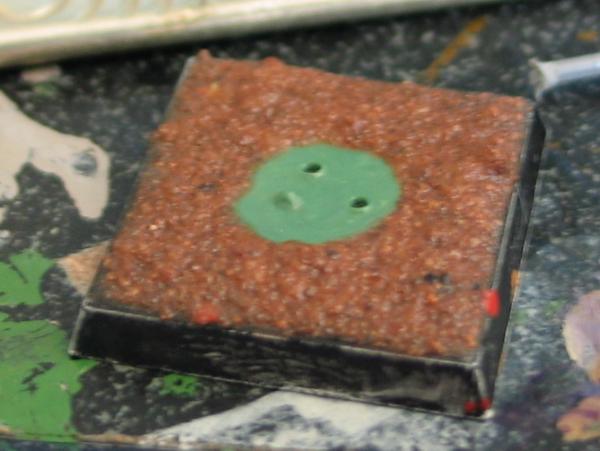 Step 2: use some red basing sand outline the painted area's then dry brush the top black