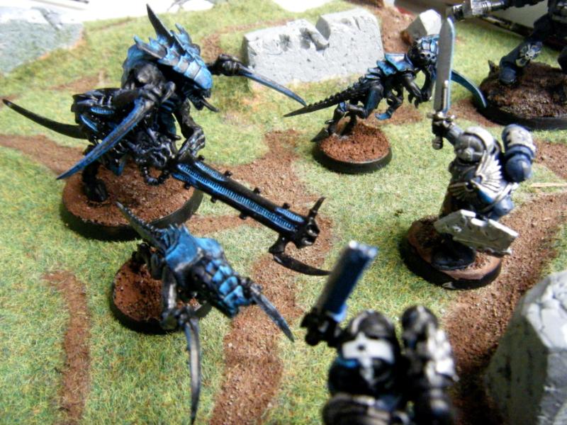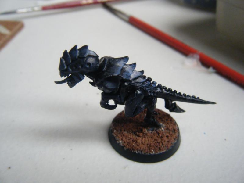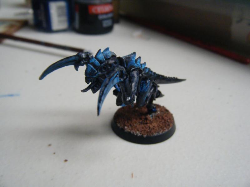 heavily dry brush "enchanted blue" on the scales. claws and teeth of the Tyranid