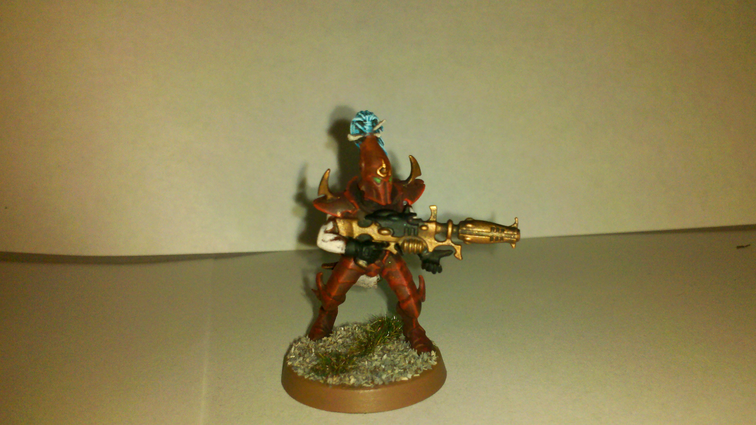 I don't like metallics on Dark Eldar, and as a result the gold gun falls flat for me. A warm, bronze-ish brown color would look better in my opinion. That red is really nice though.