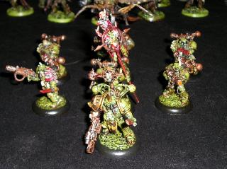 This guy is just the standard Chosen with nothing but a bolter, but slowly became one of my favorites. I used a head from a plastic mold I made of the corpse cart bodies & some