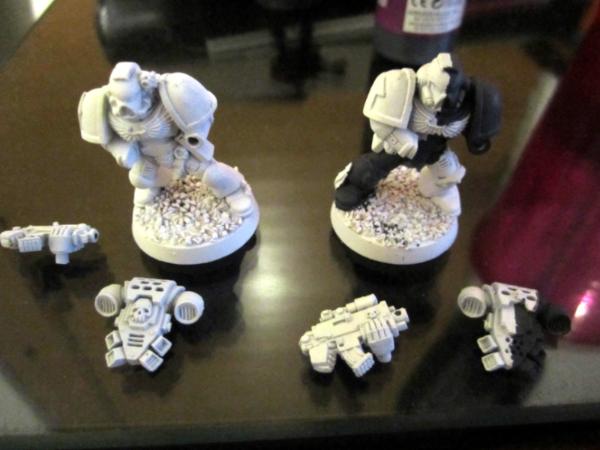 So I primed a couple of AORB tac marines in white, I also was going to paint them un-assembled and then but them together after being painted.