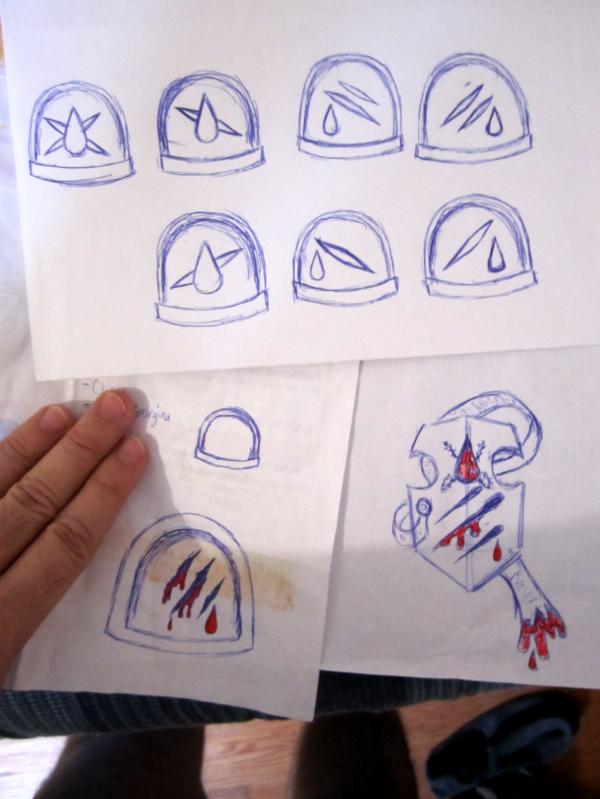 My friend got more into the fluff by reading the books and online info. I have just been getting into it as well. So randomly one night he was testing me on the original chapters and I said Blood Scars, guess I combined Blood Angels with White Scars...  But we thought that was a cool name so I decided to build a custom space marine chapter army. I will be following the Blood Angels Codex.