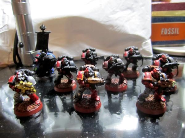 thanks, yea since these wont be in my 2k army, they are not all battle damaged but its good for practice while I assemble my assault marines. Your right about the highlights. Im doing bloody red high lights on the heavy red (mechrite) base coat. They are more noticeable in real life, sucks it doesn't show in the pic so well but I might try a mix of blood red with some orange and do some subtle highlights.
