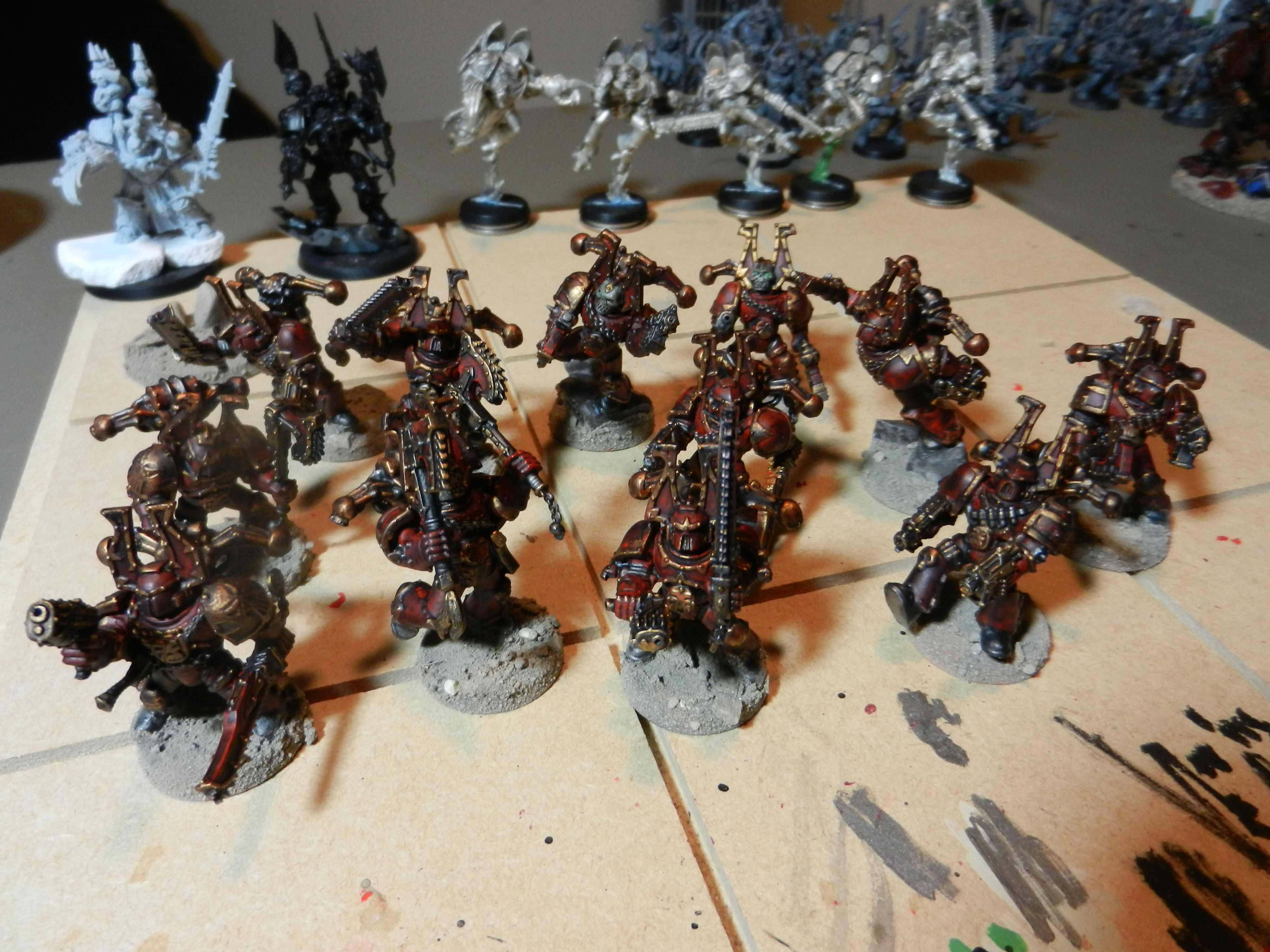 Finished Painting my Khorne Berzerker Squad and my Dread base. Appreciate any C&C.