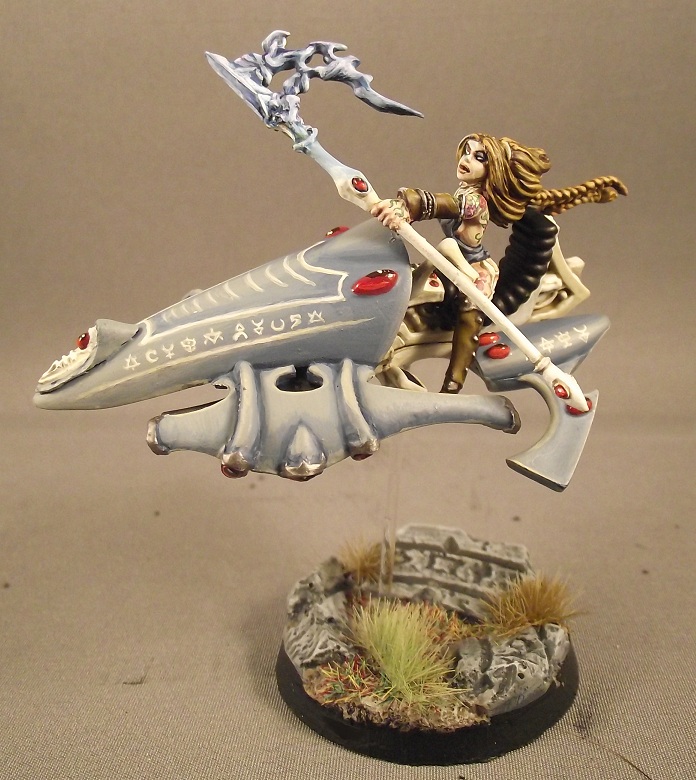 I'm glad everyone likes them. The Farseer is a Pathfinder model... I don't remember her name with the legs from a Dark Elf sorceress on the dragon.