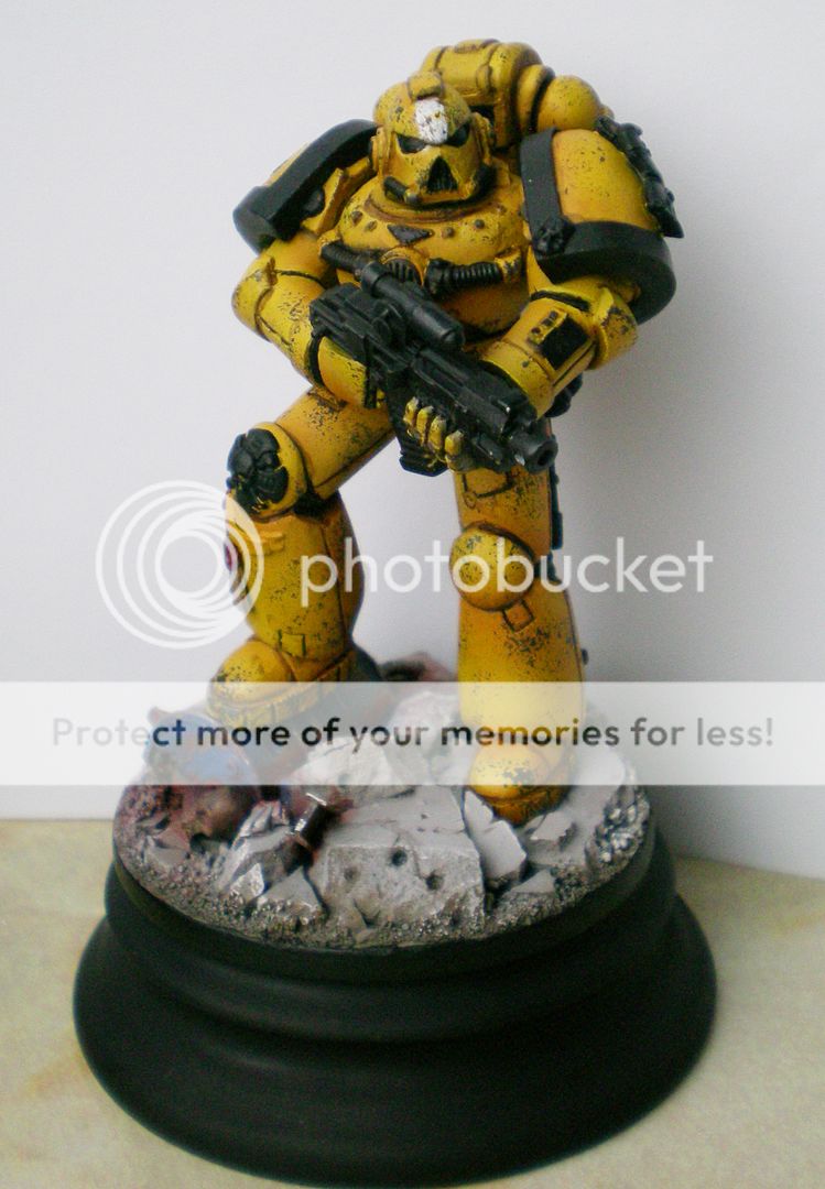 Then I decided that it was about time he got a really shiny paintjob, so I enlisted him at the emperors favorite boy-scouts, the Imperial Fists!