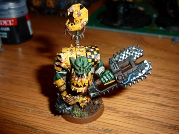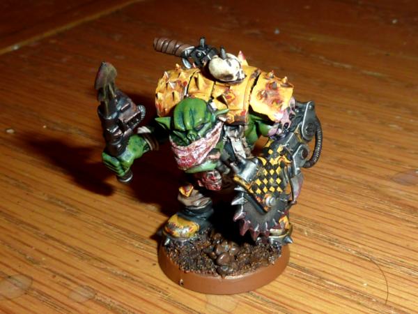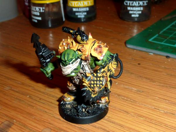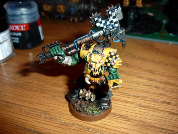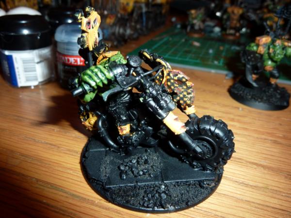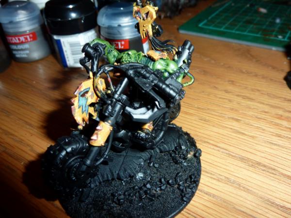 The Biker Nob has had the least work done, but at least his Power Klaw is done.