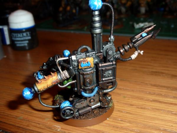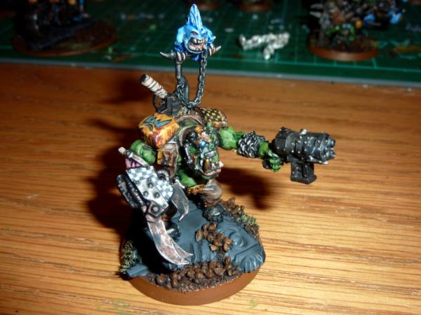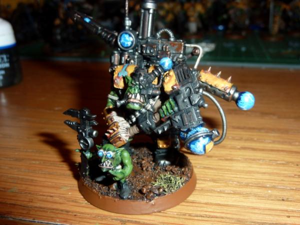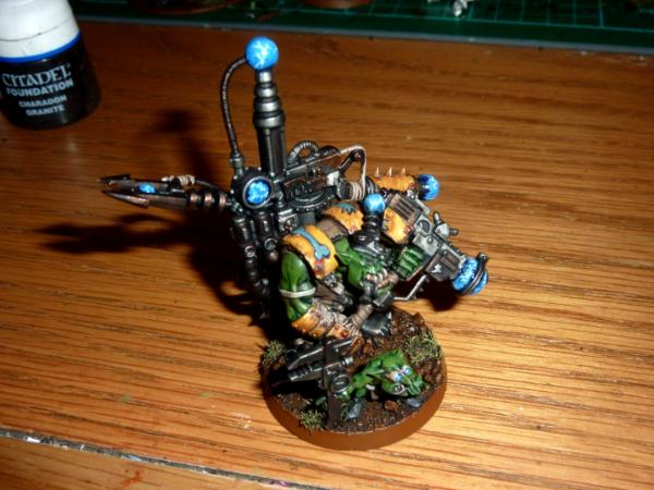 Big Mek, got a lightning effect on the blue power sources, still have a lot of work to do on his KFF.