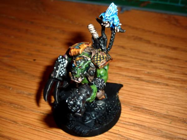Warboss.... relatively pleased with how he's looking, think his attack squiq is has turned out nicely, especially the mottling on its spine.