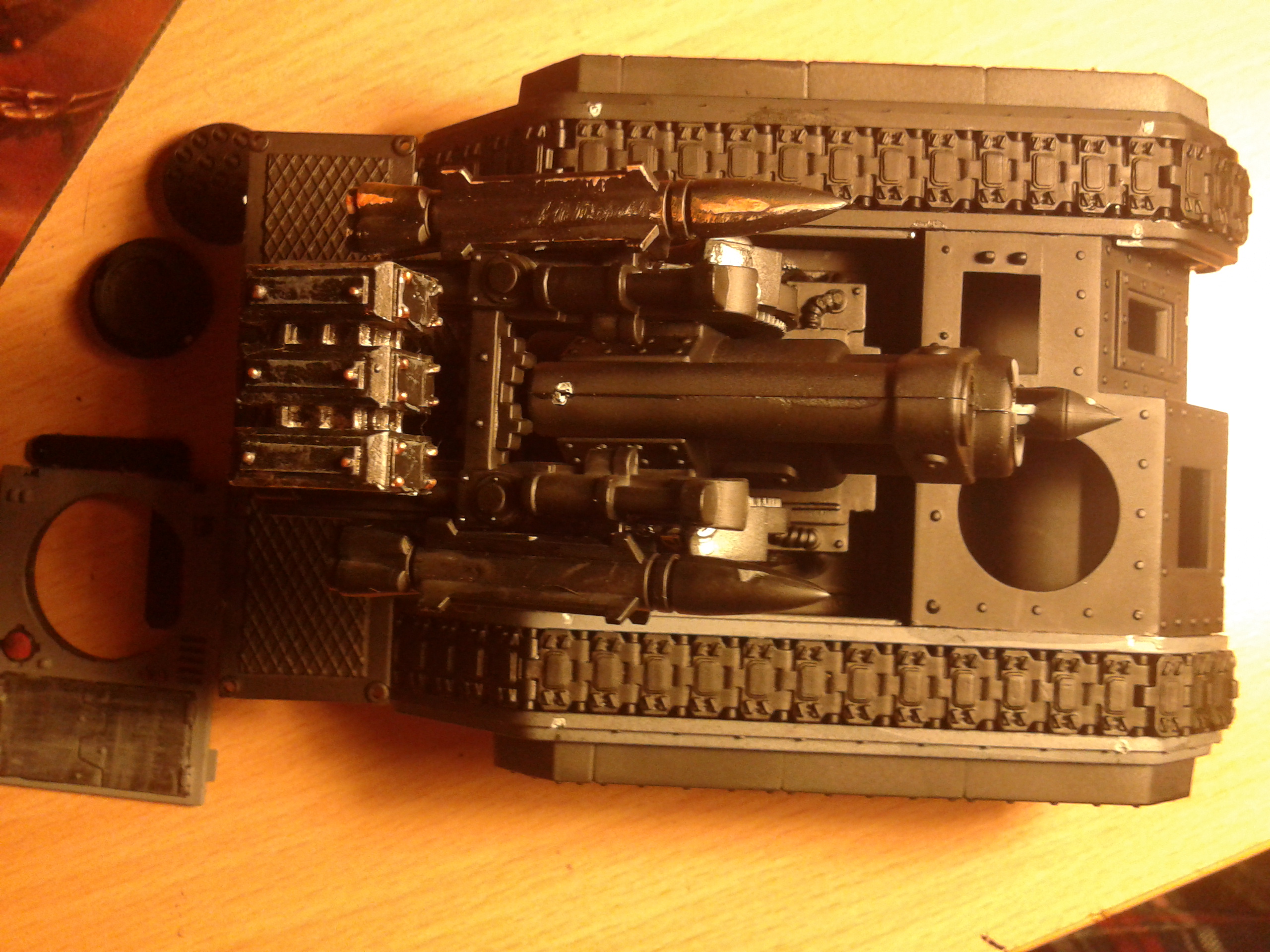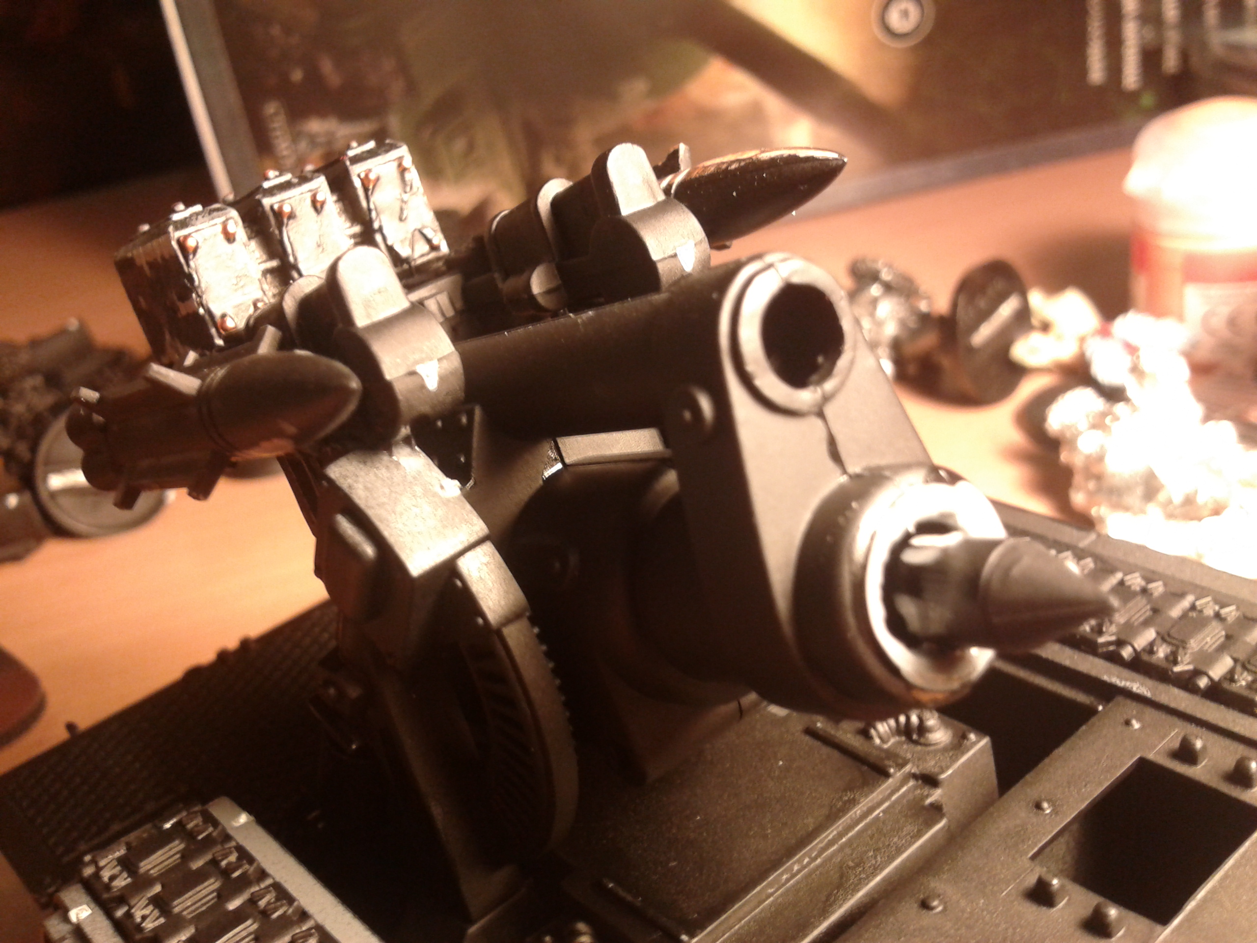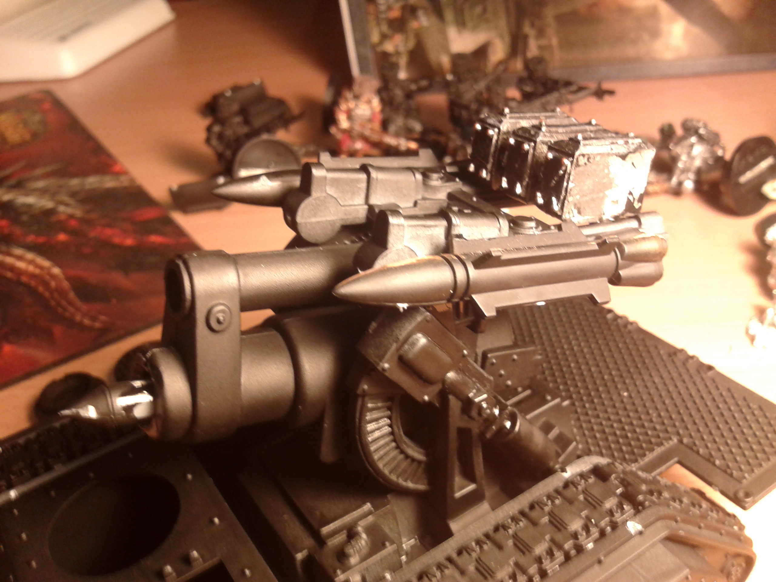 This is made up of Basilisk parts, all except for the two side missiles and the 3 ammo boxes in the back are from the basilisk set, ( missiles from Valkyrie, boxes in the back are from the back of a land raiders bolter side guns.